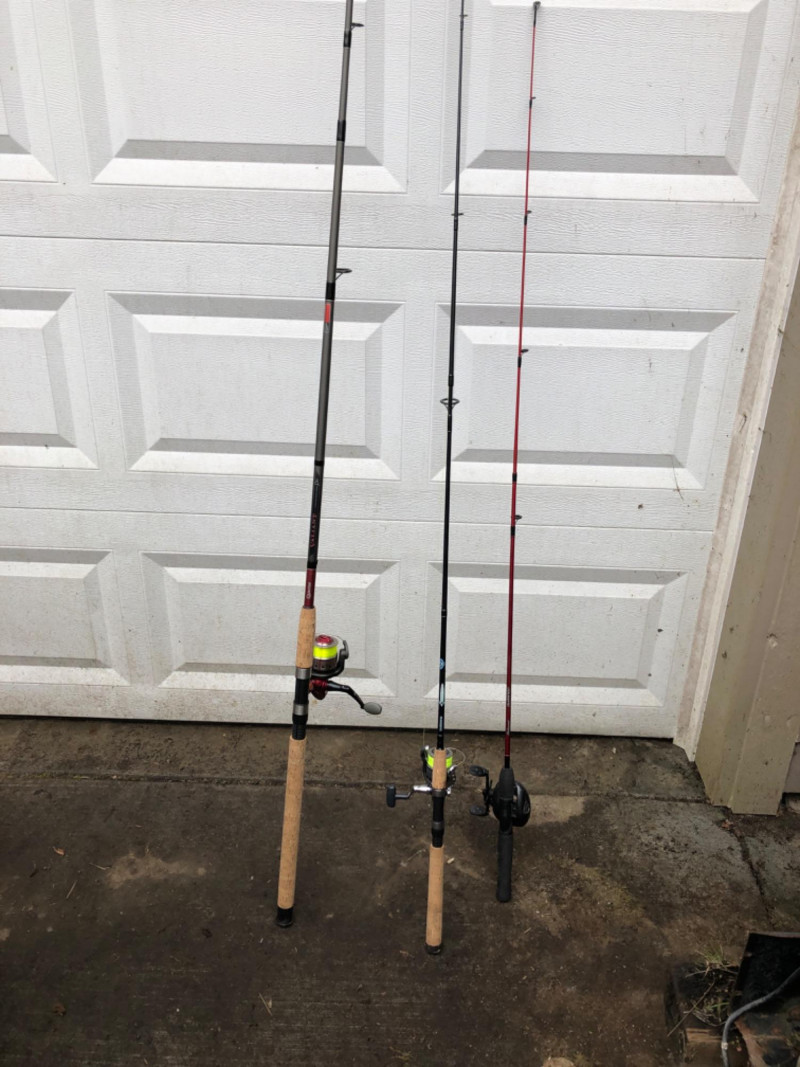 Lot # 47 - Three Fishing Rod & Reel Combos – Quantum, Shimano, Ambassadeur