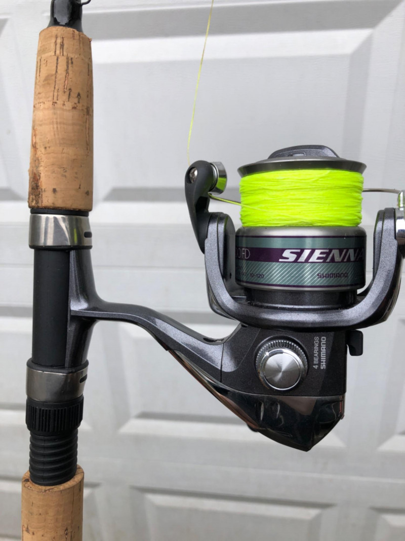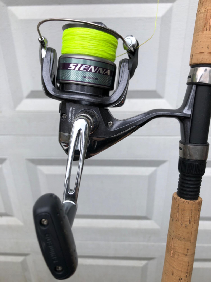 Lightweight, responsive setup with smooth action and durable composite construction. Shimano Sienna 2500FD spinning reel on Shimano Sojourn rod - 6.5 feet long