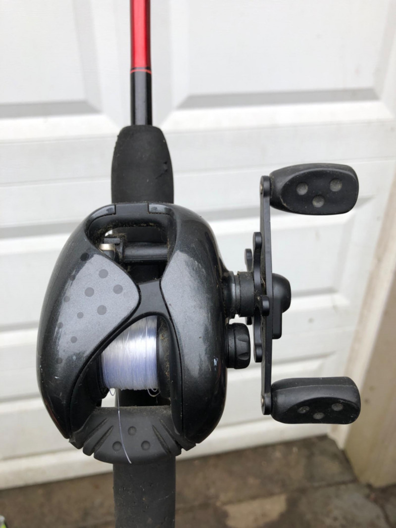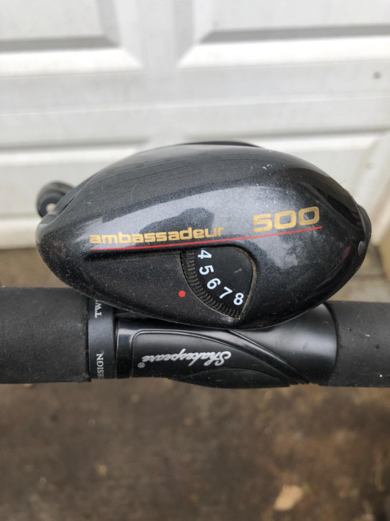 Reliable mid‑range combo ideal for trout, bass, and general lake/river fishing. Ambassadeur 500 baitcasting reel on Shakespeare Durango rod - 5 feet long
