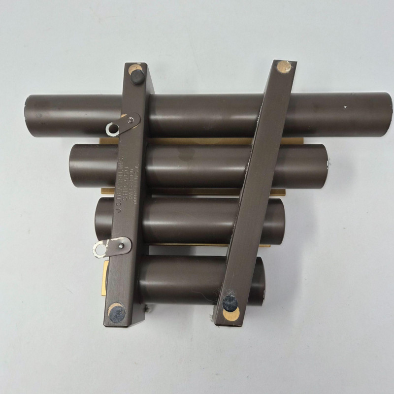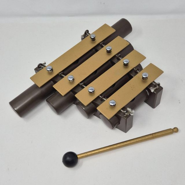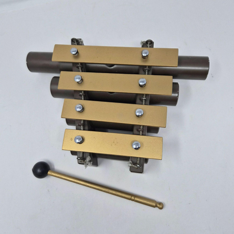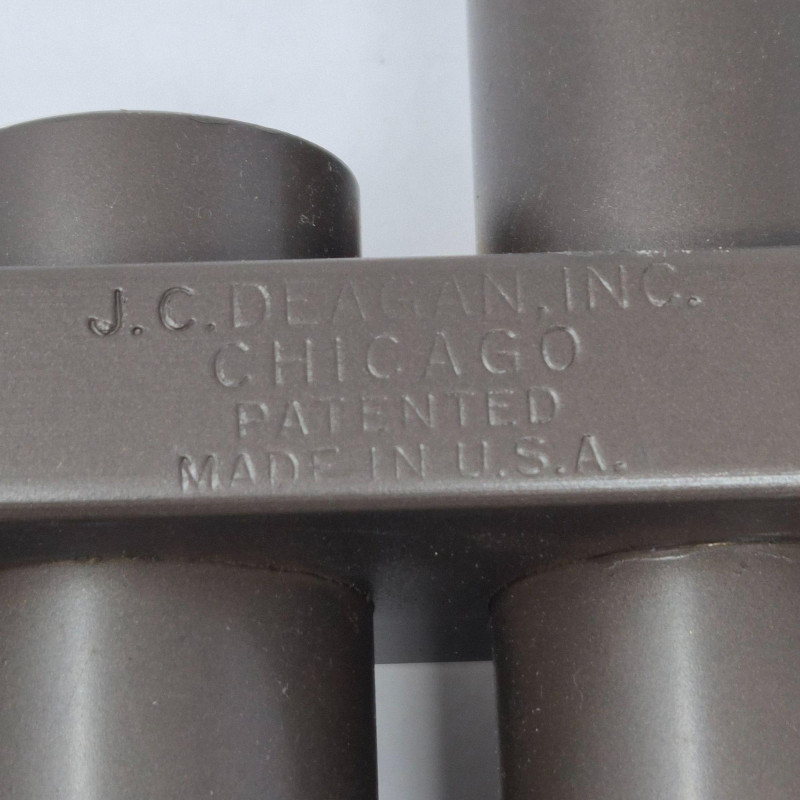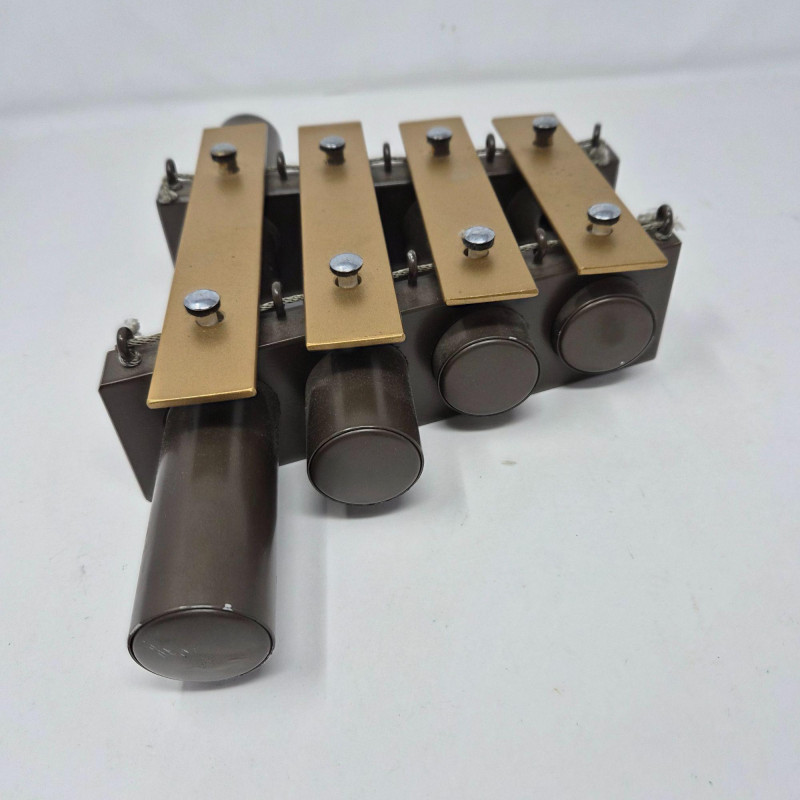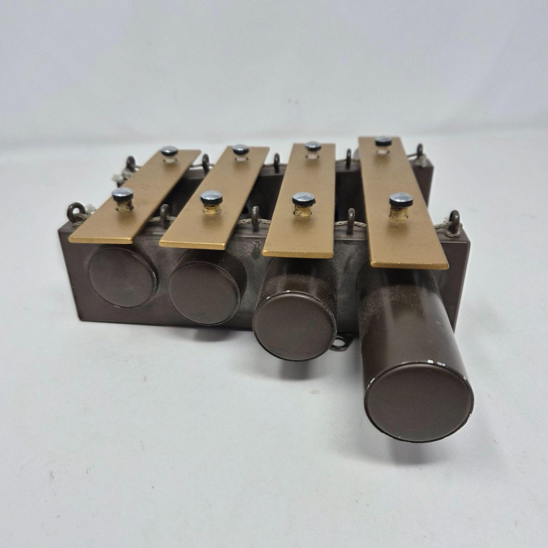 A vintage 4‑tone railroad-style dinner chime or xylophone made by J.C. Deagan Inc., Chicago USA, known for producing high‑quality percussion instruments throughout the early–mid 20th century. Originally used aboard passenger rail lines to signal meal service, these elegant and compact chimes feature four tuned metal bars with resonators that deliver beautiful, crisp, bell‑like tones. A fine example of American railroad history with strong appeal for musical‑instrument collectors. Includes it's striker/mallet.