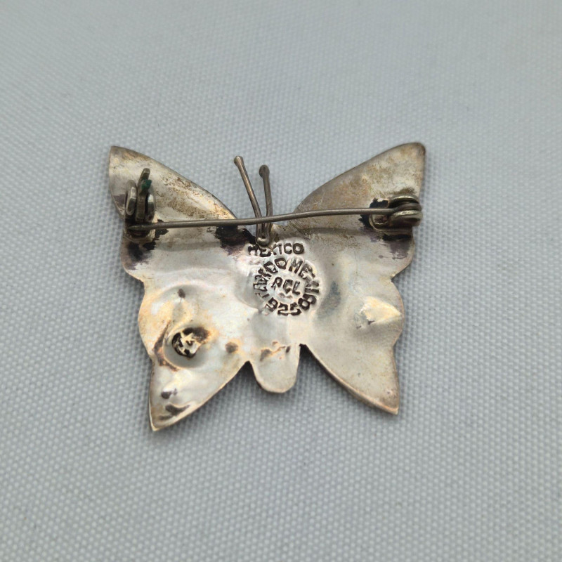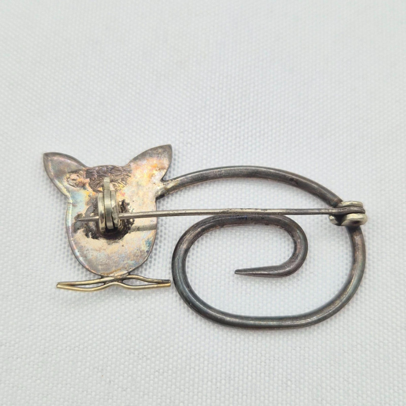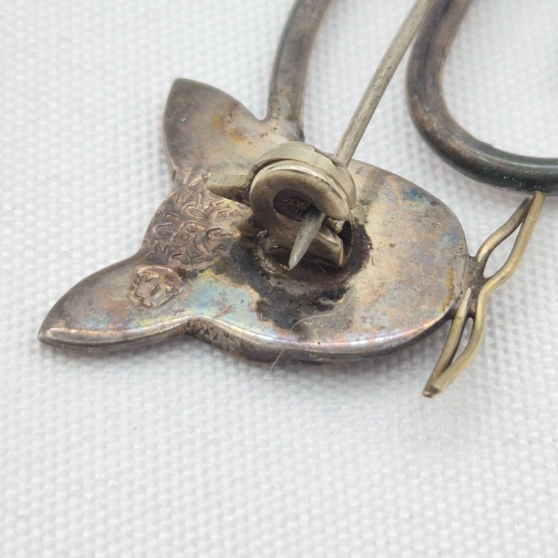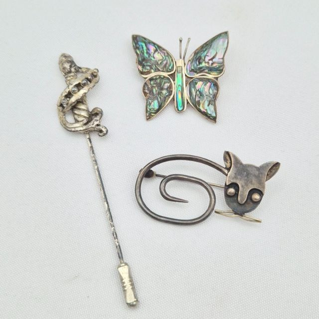 Lot # 74 - Mexico Sterling Cat Brooch, Abalone Butterfly Brooch & Sword Stick Pin