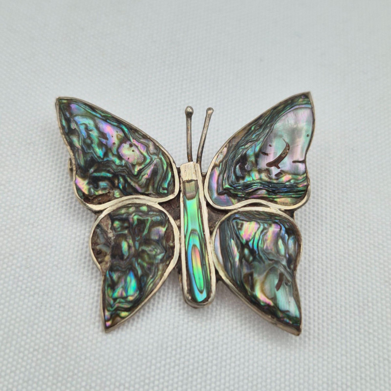Three vintage jewelry pieces including: Each piece reflects distinctive mid‑century styling with hand‑crafted details, from the iridescent abalone panels to the minimalist cat silhouette and decorative sword motif. Estate‑found with age‑appropriate wear; see photos for metal surfaces, inlay condition, and overall detail. **This lot qualifies for shipping**