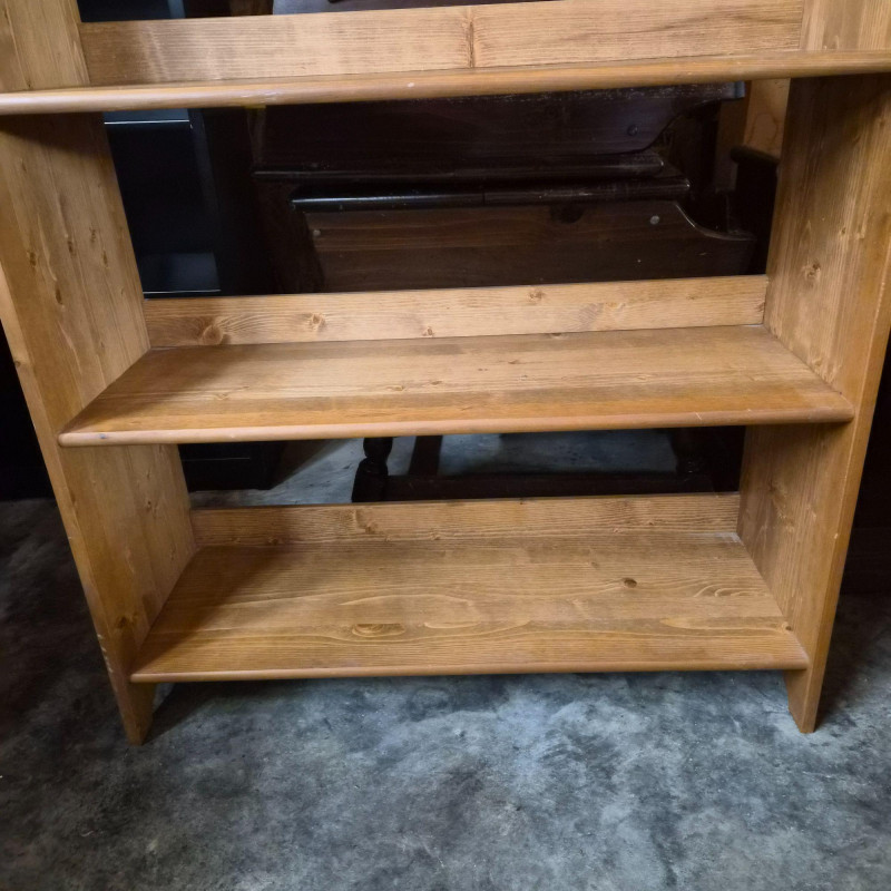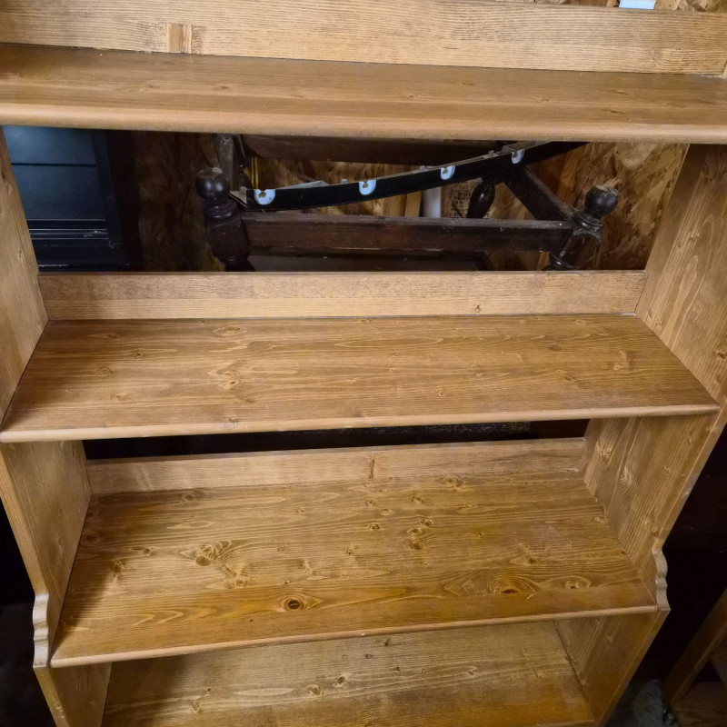 A classic IKEA Leksvik shelving unit crafted from natural, unfinished pine, featuring the warm, traditional styling that defines the Leksvik line. This six‑shelf unit has a subtly tapered profile and an open‑back design, giving it a lighter, more airy presence compared to closed bookcases. The open back allows wall color to show through, making it easy to blend into a variety of rooms while keeping the piece visually unobtrusive. Shelf depths: The open‑back construction also makes it ideal for displaying décor, baskets, books, or plants without feeling bulky—perfect for cottage, farmhouse, or Scandinavian‑inspired interiors.