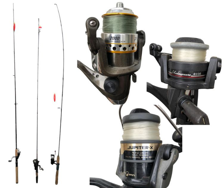 Lot # 90 - Three Fishing Rods with Pesca 2000, Shakespeare 41/35 & JupiterX Reels