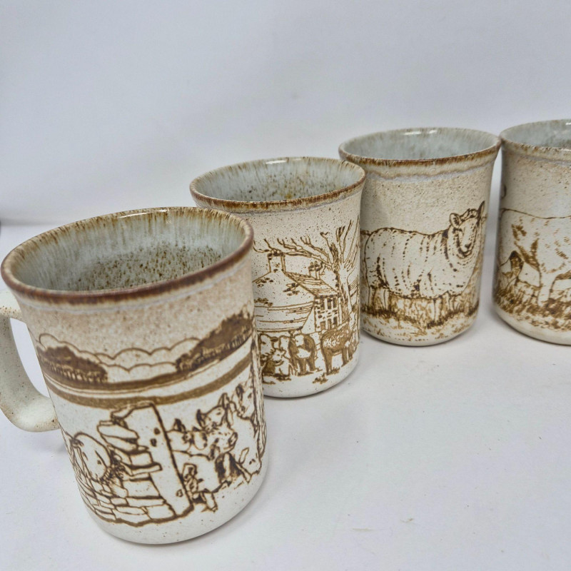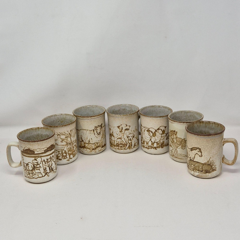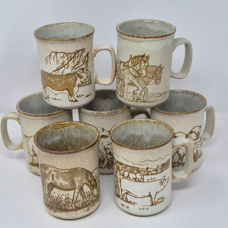 Lot # 100 - Dunoon Ceramics Scotland Farm Scene Mugs – Set of Seven
