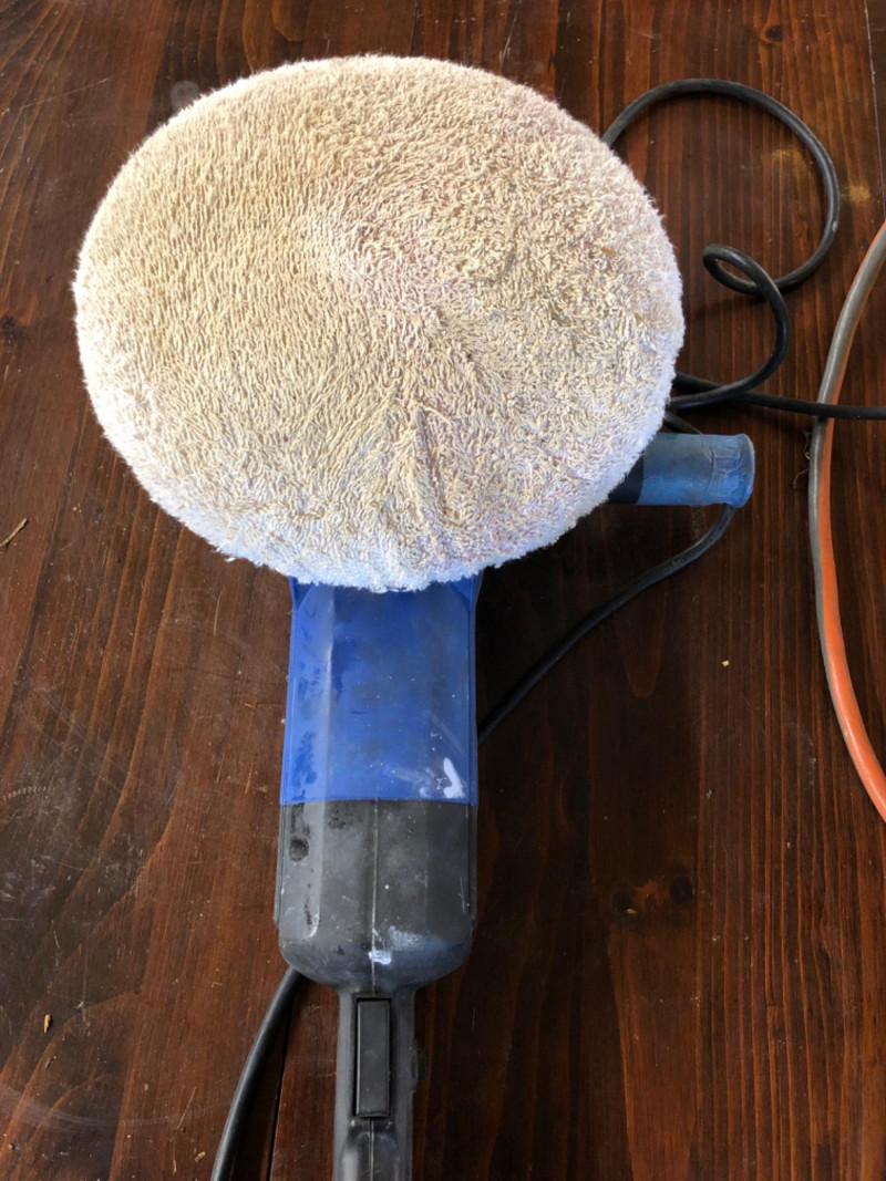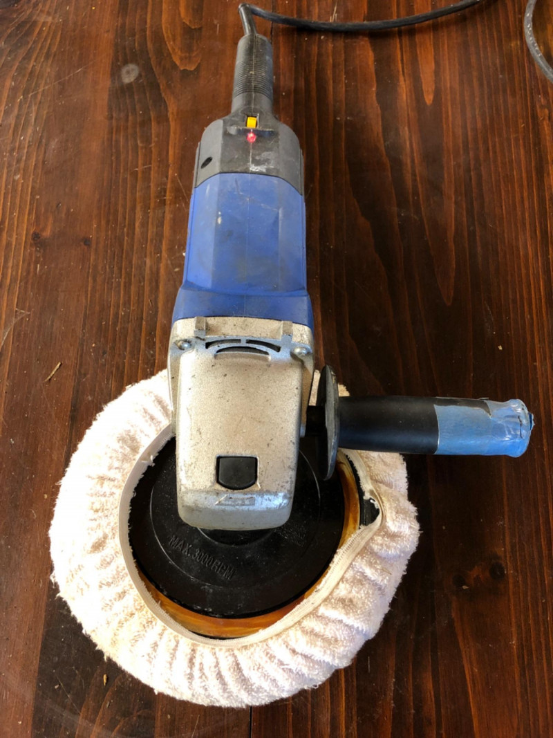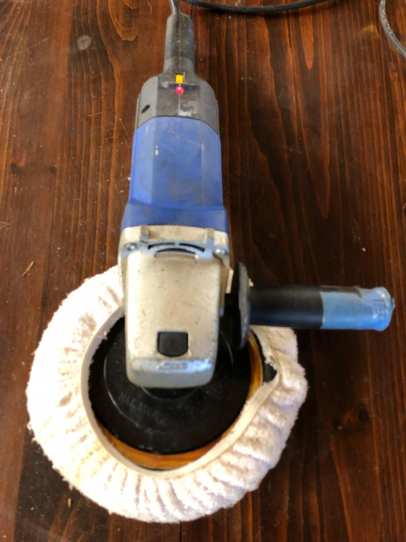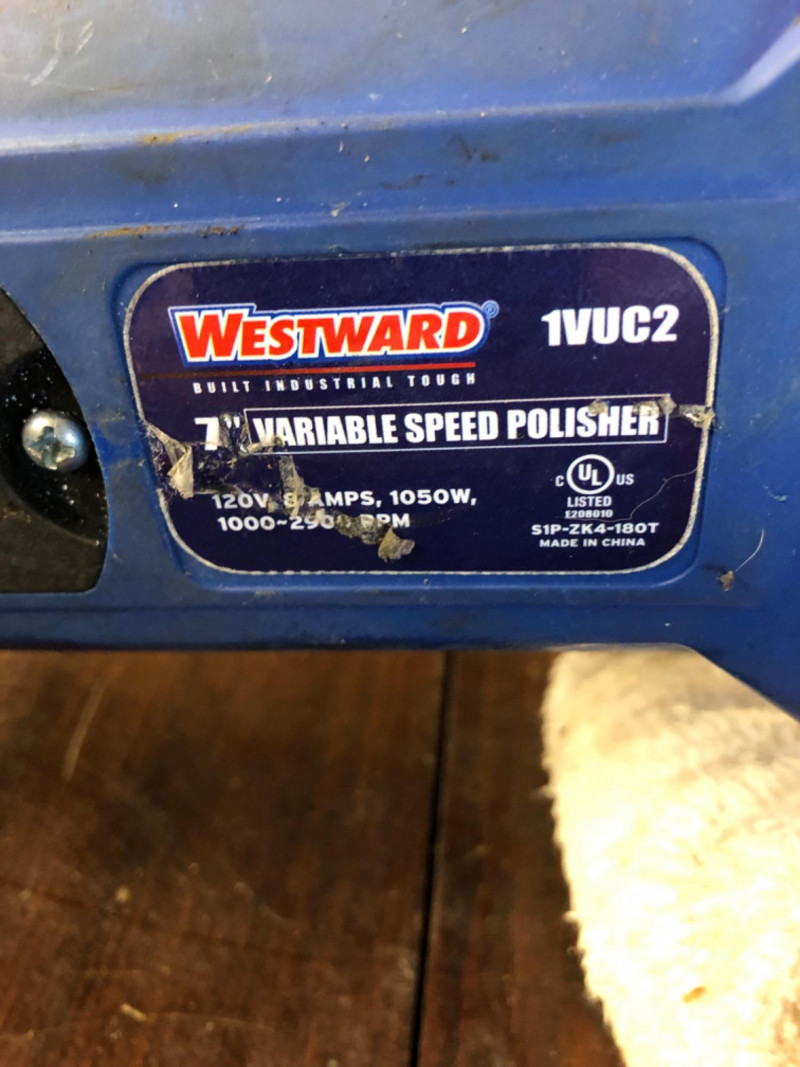 Westward 1VUC27‑inch variable speed polisher, 120V, 9 amps, 1050W, with a speed range of 1000–2500 RPM. Features industrial‑grade construction with ergonomic handle and removable polishing bonnet. Suitable for automotive detailing, metal finishing, and shop use. Unit shows typical wear from use; presented as found. See photos for condition. Powers on and working.
