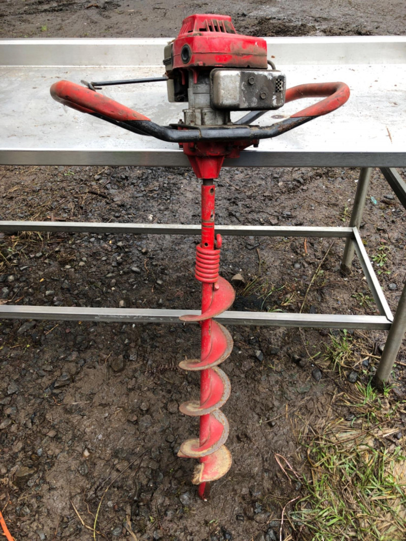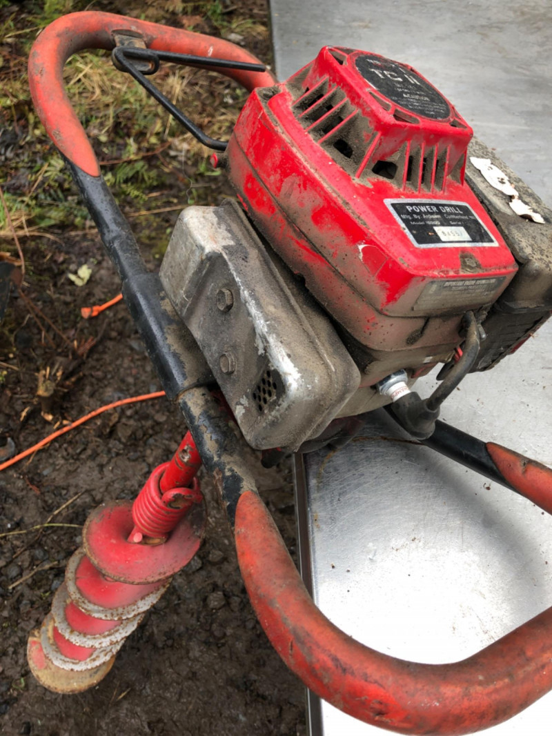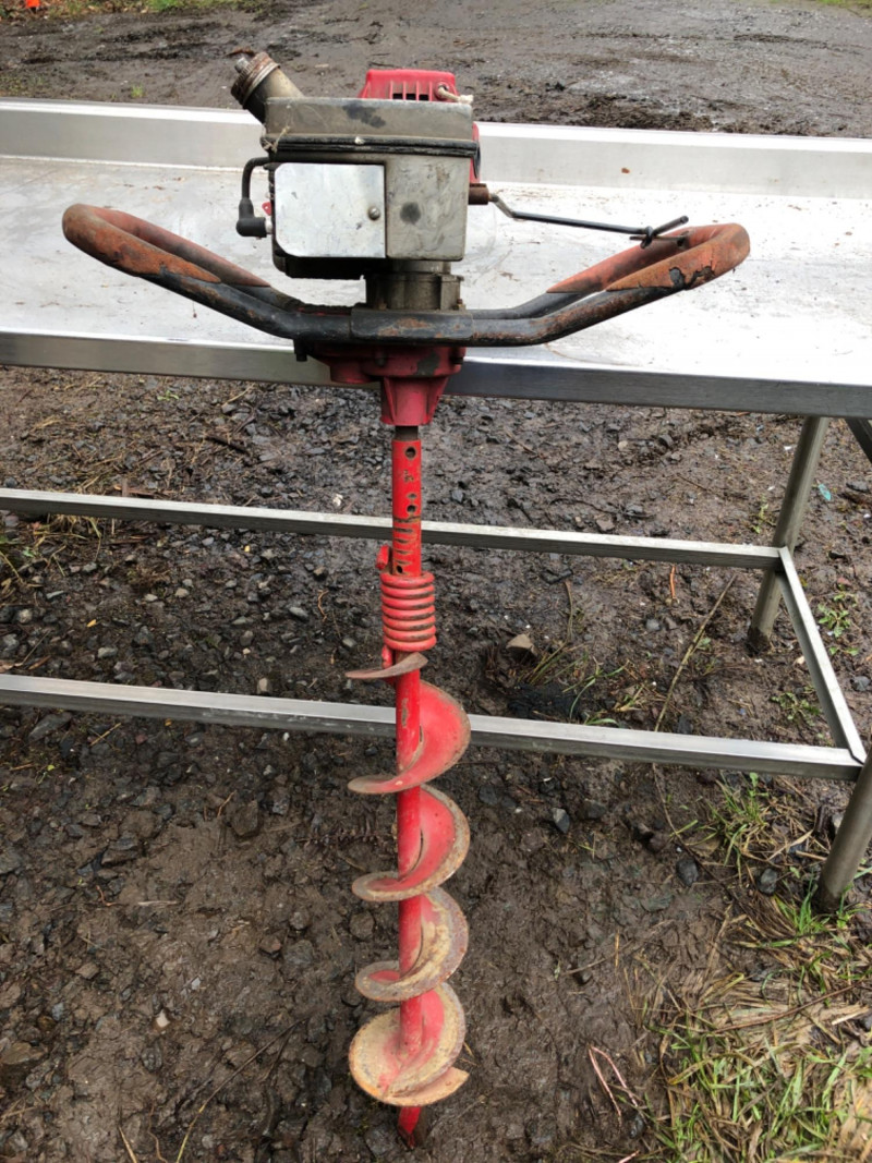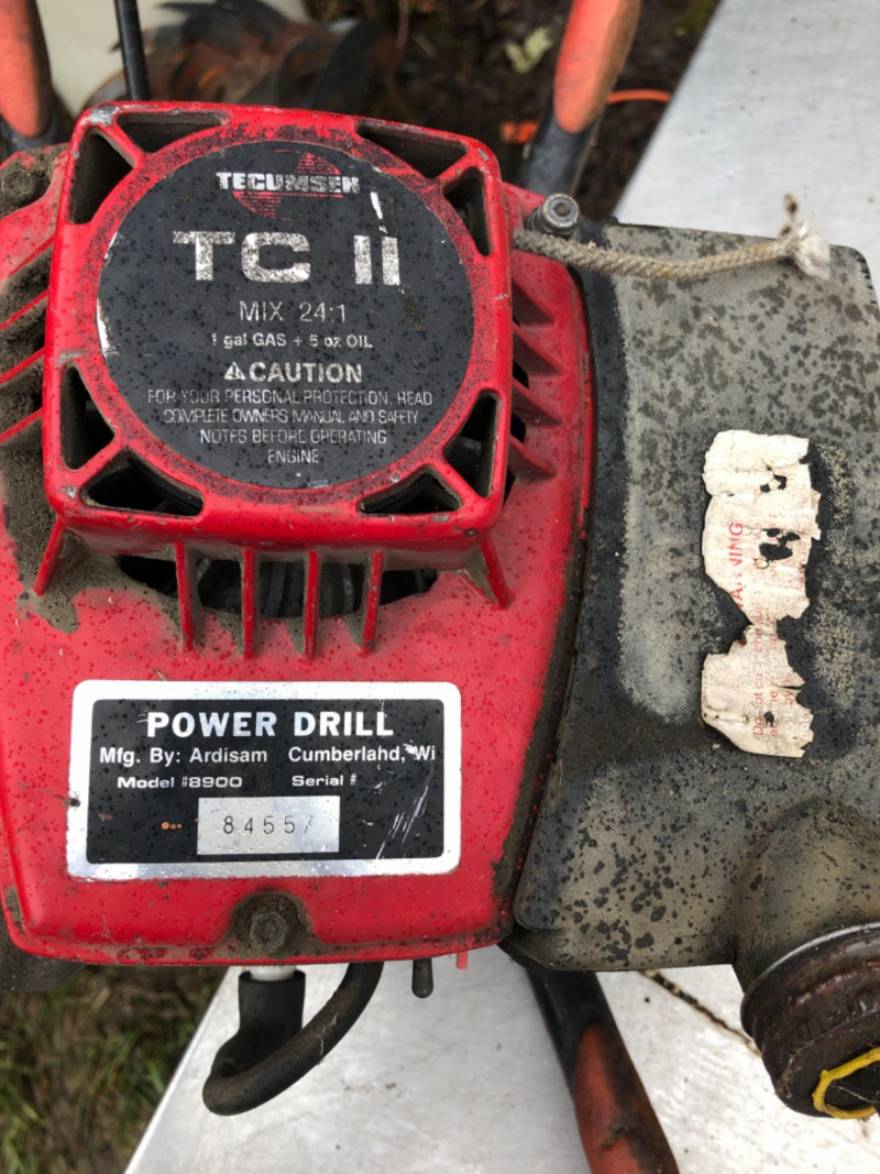 Gas‑powered handheld drill equipped with a Tecumseh TC II 2‑cycle engine, mixed at 24:1. This Ardisam Model 8900 unit was designed for high‑torque applications where electric power isn’t practical—fencing, ice augers, soil drilling, and remote jobsite work. Shows normal wear from field use and presents as‑is. Pull start, throttle, and fuel system components appear intact; functionality is untested by seller. Engine: Tecumseh TC II 2‑cycle Fuel Mix: 24:1 Model: Ardisam 8900 High‑torque output suitable for drilling in soil, timber, or ice Portable design for off‑grid or remote work environments A rugged specialty tool for farm, field, or construction use, ready for restoration or integration into your existing equipment lineup.