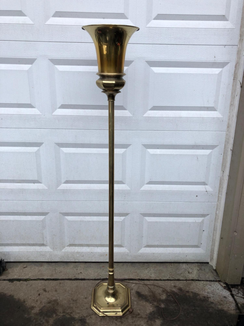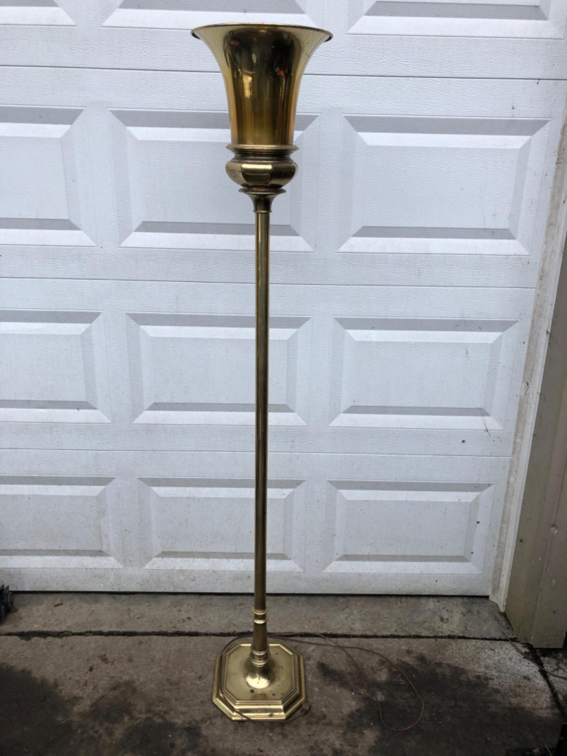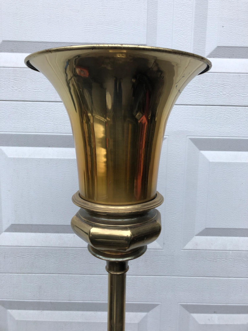 Lot # 141 - Mid-Century Brass Torchiere Floor Lamp – Hollywood Regency Style