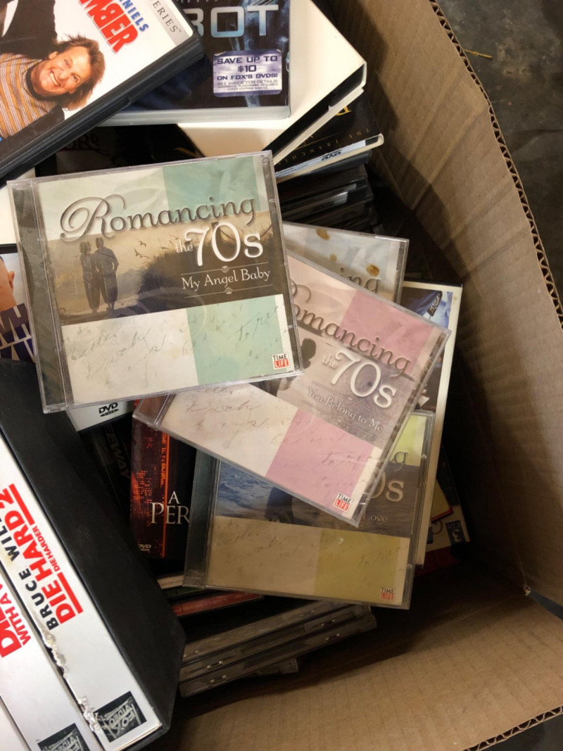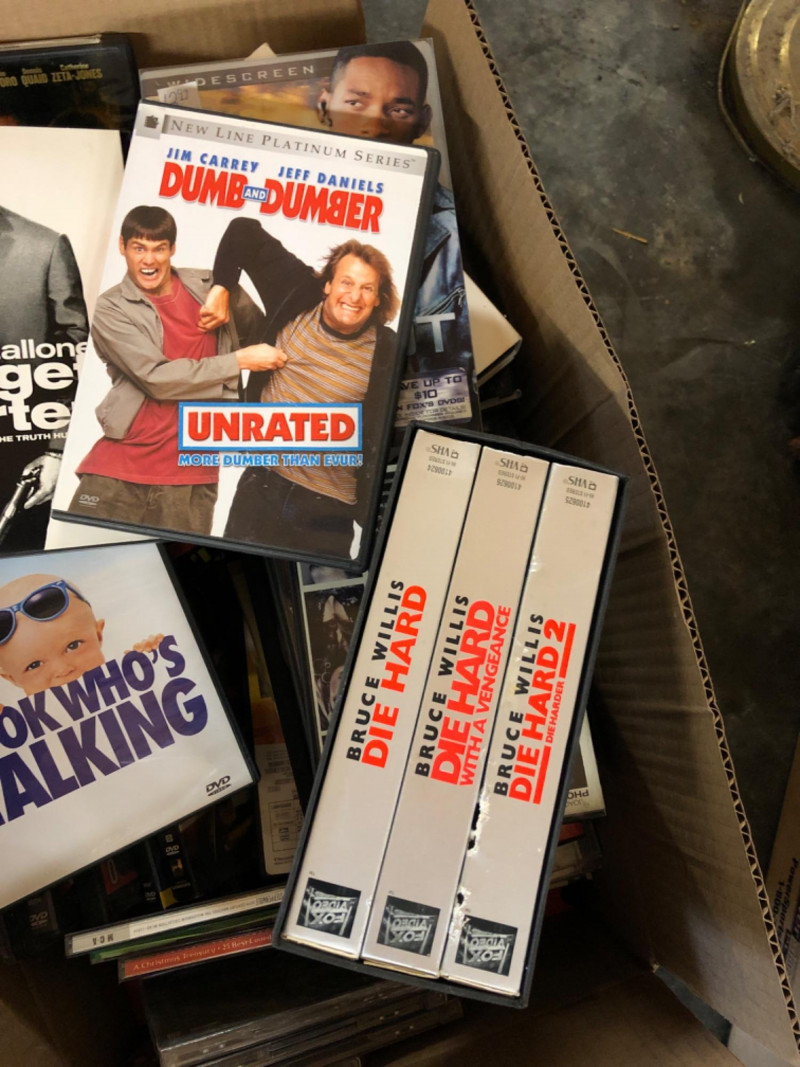 Lot # 146 - Box of Assorted DVDs, CDs & VHS Movies – Mixed Media Variety