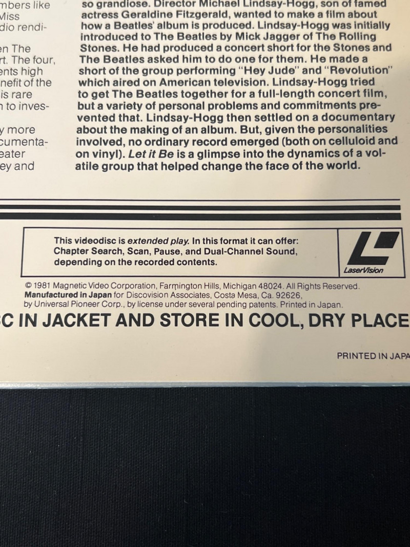 Lot # 4 - The Beatles “Let It Be” LaserDisc – 1981 Magnetic Video Release