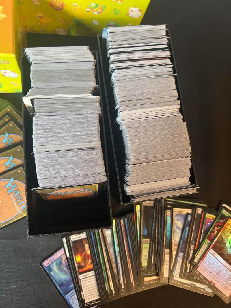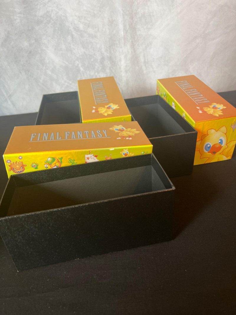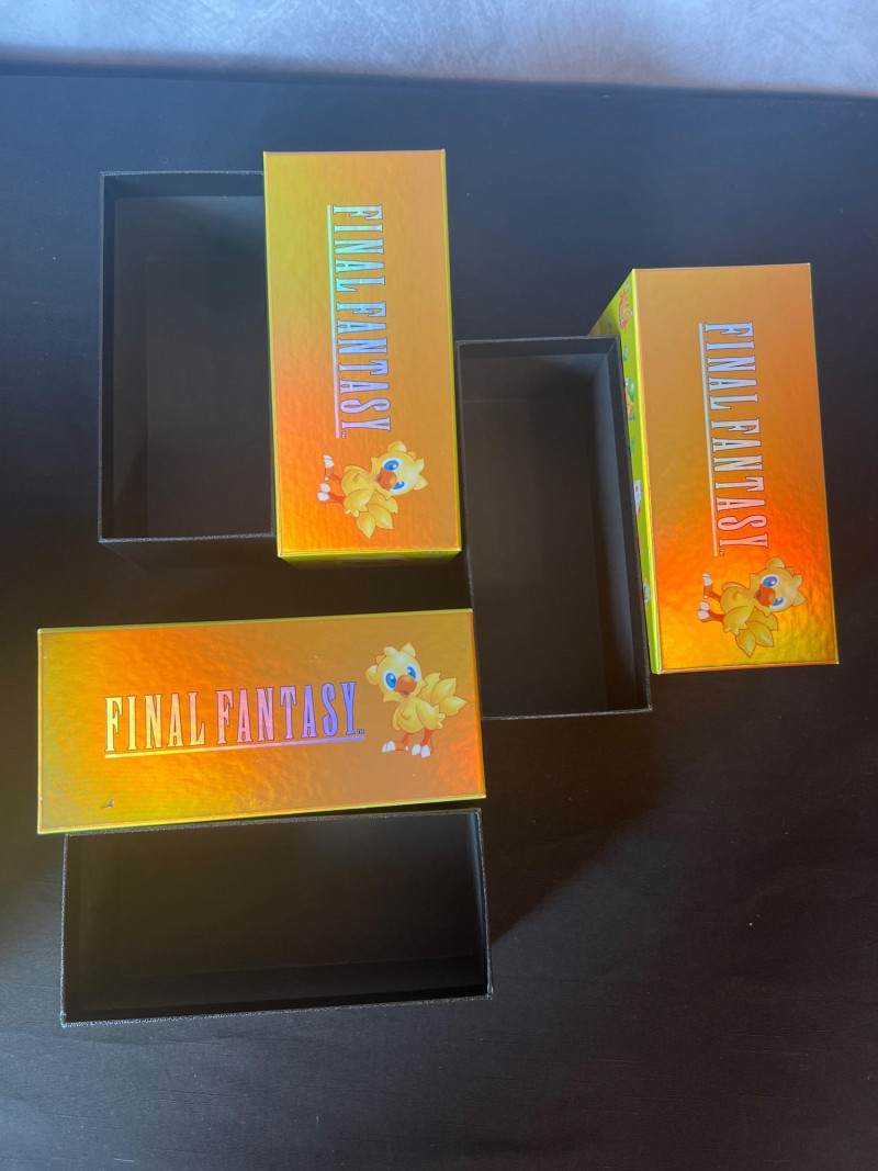 Mixed lot of Magic: The Gathering × Final Fantasy–themed trading cards and accessories, including two full storage boxes of cards, three empty character boxes, and four Final Fantasy game counters. Boxes feature classic FF mascots such as Chocobo, Moogle, and Cactuar, with two boxes shown open that are filled with cards. Three extra boxes included. A fun crossover bundle for fans of Magic, Final Fantasy, or collectible TCG accessories. Ideal for players, collectors, or resellers looking for themed storage and a ready‑to‑sort card assortment. Note: Most vinyl records and LaserDiscs in this auction are visually graded Near Mint, with covers showing normal signs of handling, shelf wear, or age‑appropriate fading.