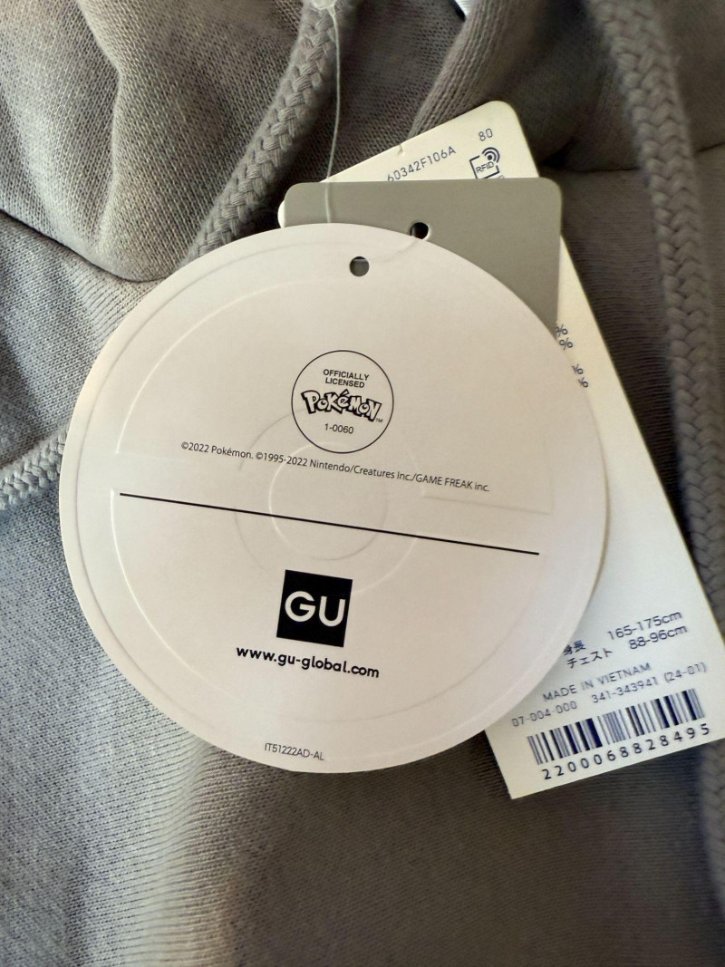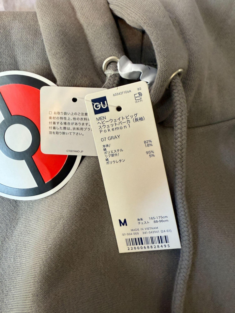 Lot # 12 - GU × Pokémon Heavyweight Gray Hoodie with Poké Ball Tag (Men’s M)