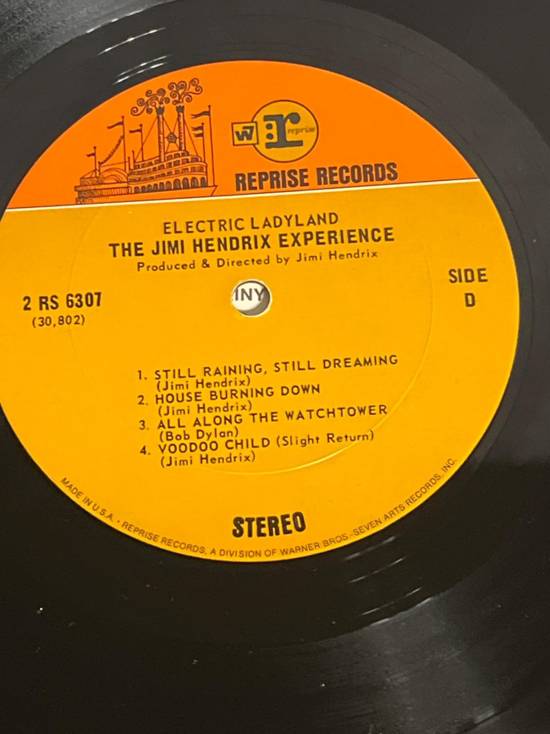 Original Electric Ladyland LP by The Jimi Hendrix Experience, featuring the iconic red‑toned portrait cover. Widely regarded as Hendrix’s most ambitious studio album, Electric Ladyland blends psychedelic rock, blues, and experimental production, including standout tracks such as “Voodoo Child (Slight Return)”, “Crosstown Traffic”, and “All Along the Watchtower.” A cornerstone album for Hendrix collectors and an essential piece of late‑1960s rock history.