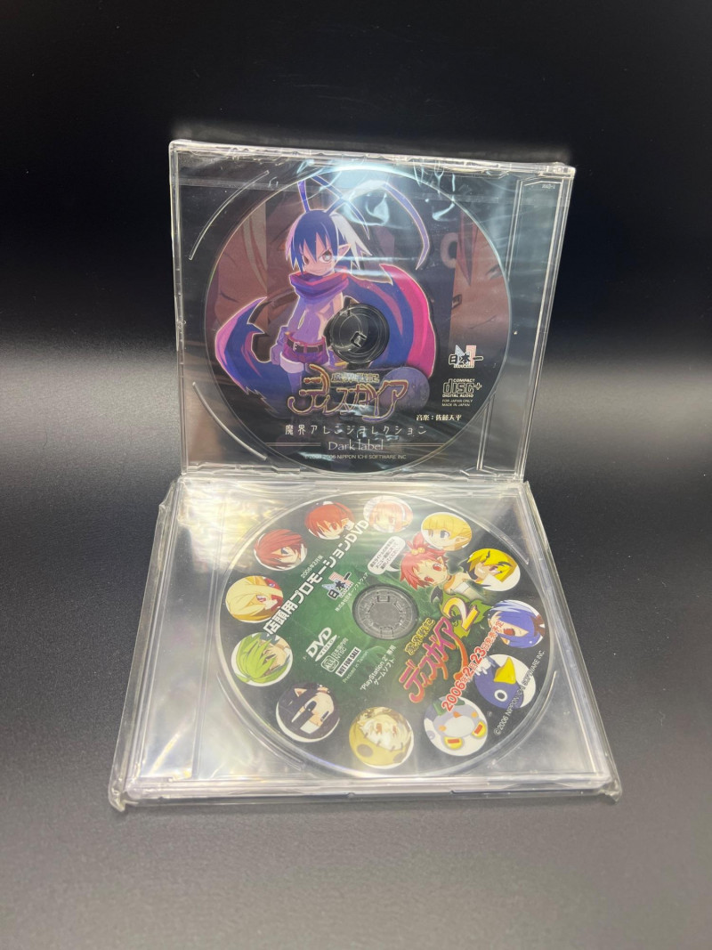 Japanese retail promo DVD used for in‑store advertising prior to the release of Disgaea 2. Features character previews, trailers, and promotional materials. A rare item for collectors of Nippon Ichi Software memorabilia. Both discs are visually clean with bright, crisp artwork — ideal for fans of the series, soundtrack collectors, or anyone building a Disgaea or NIS archive.