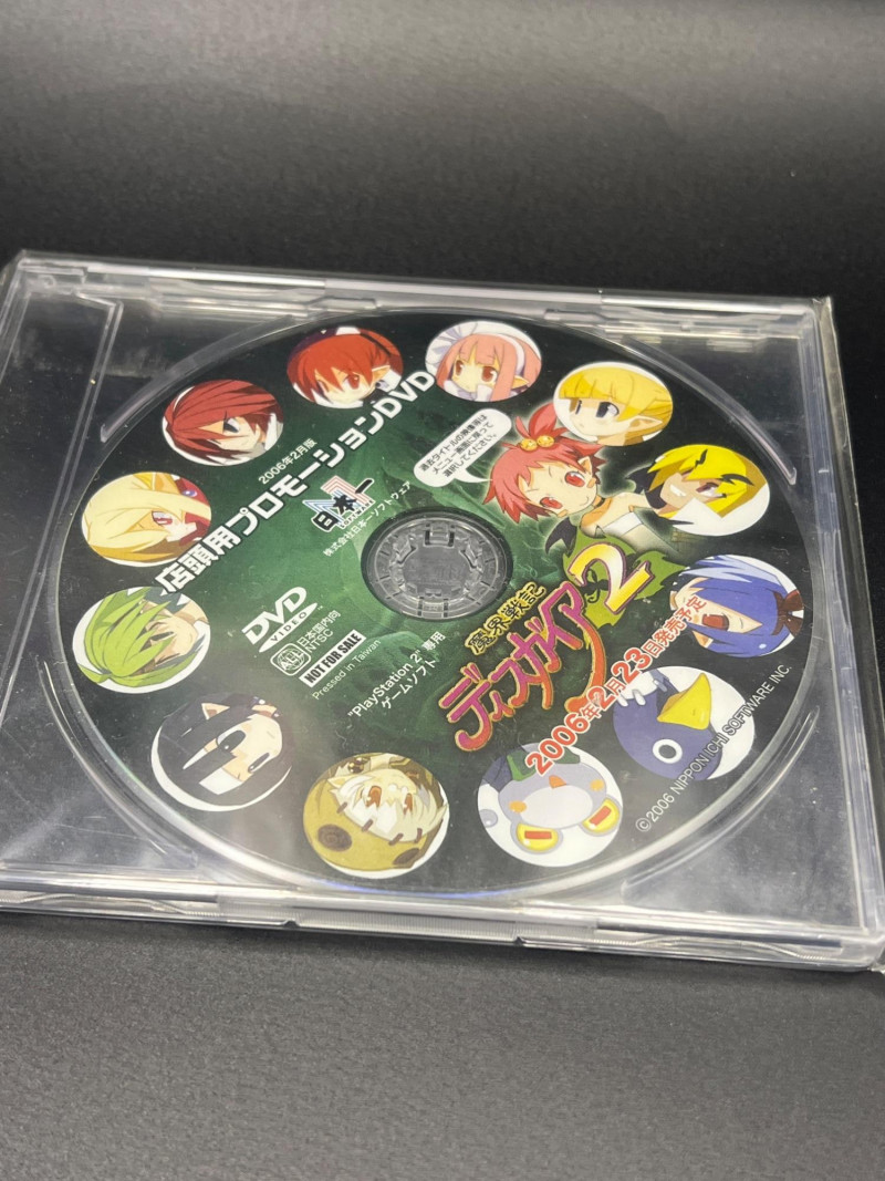 Official Japan‑only arranged soundtrack featuring new interpretations of the original Disgaea score by composer Tenpei Sato. Includes stylized character artwork and original Nippon Ichi Software labeling. Disgaea 2 – Storefront Promotional DVD (2006)
