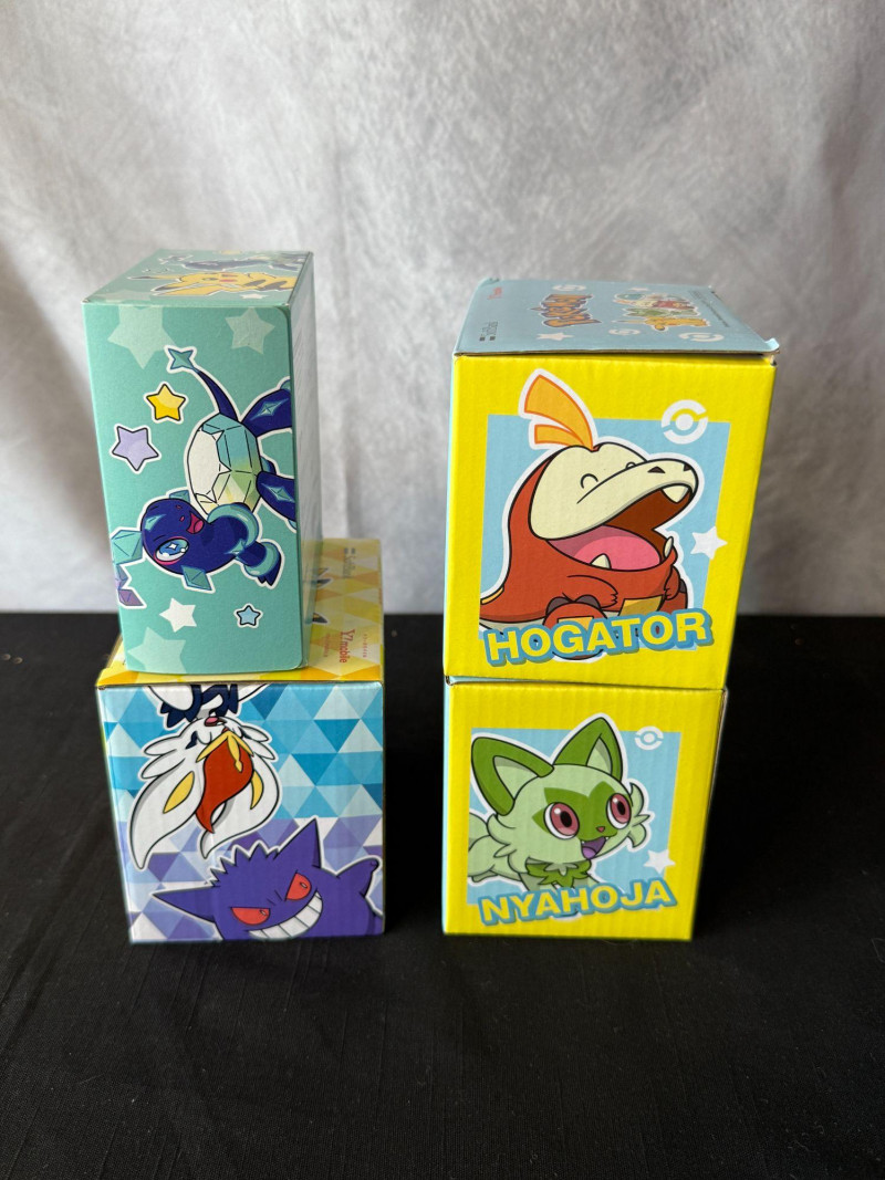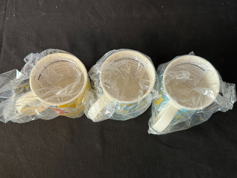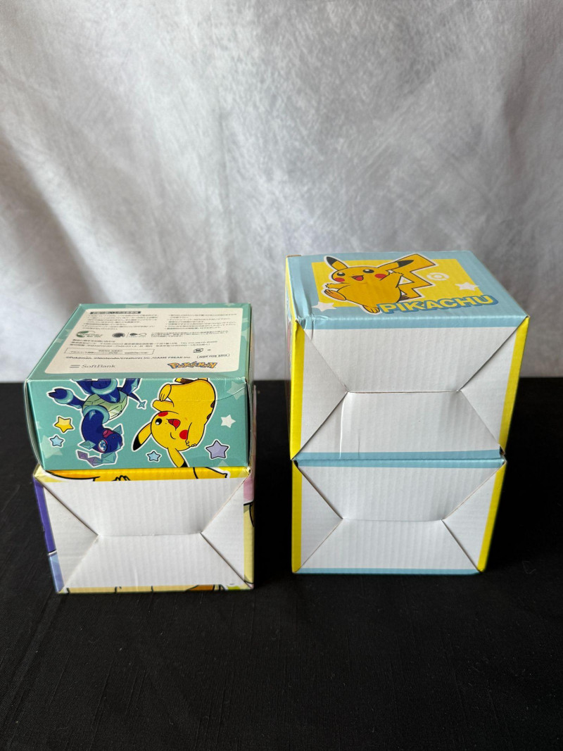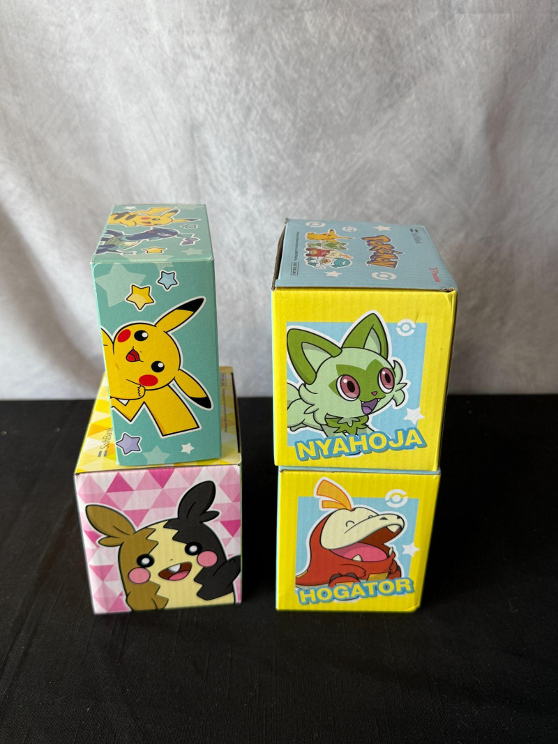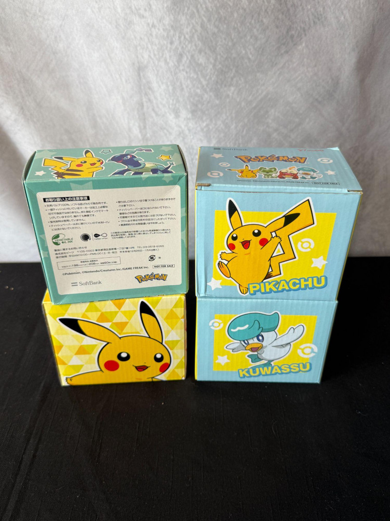 Charming Pokémon drinkware bundle featuring three bright, character‑themed ceramic mugs and a matching Pokémon Kleenex box. Ideal for collectors, kids’ rooms, or anyone who loves cheerful Pokémon décor. Includes: Yellow Pikachu & Eevee mug – bold, classic character artwork on a bright yellow base. Two blue Pikachu & Quaxly mugs – matching pair with playful character illustrations and stylized Pokémon text. Pokémon Kleenex box – colorful, character‑themed tissue box perfect for display or everyday use. All mugs appear new in protective plastic, with crisp artwork and vibrant colors. A fun, coordinated set for fans or gift‑giving.