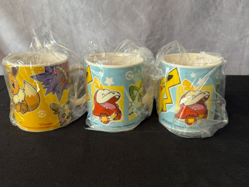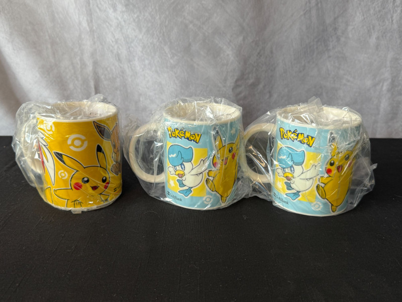 Lot # 44 - Pokémon Mug Trio + Kleenex Box – Pikachu, Eevee & Quaxly Designs
