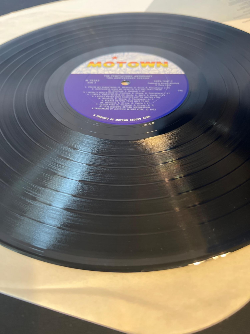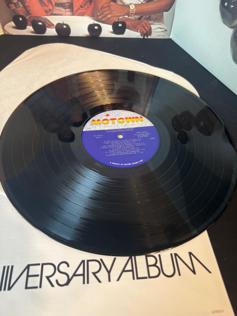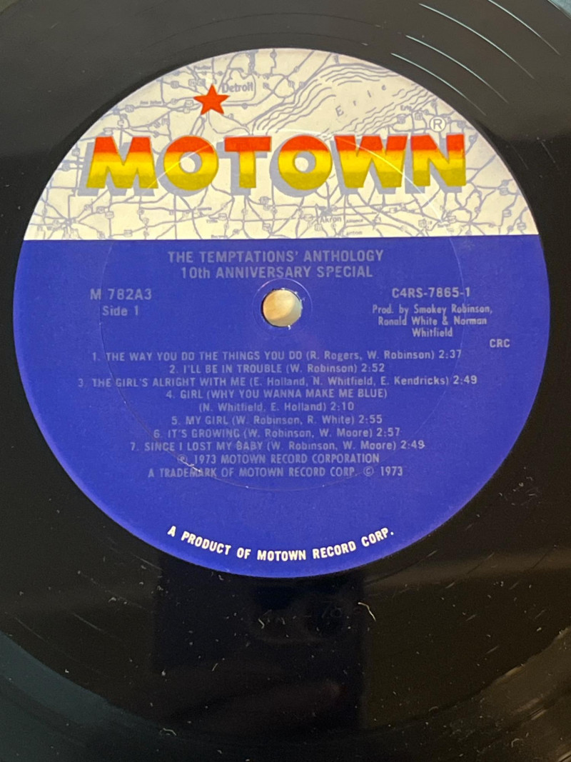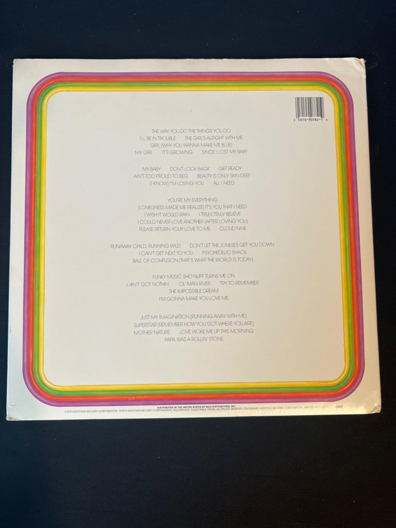 Original 1972 Motown “10th Anniversary Album” by The Temptations, celebrating a decade of groundbreaking soul, harmony, and psychedelic R&B. Features classic group portrait cover and a vibrant gatefold interior with the signature rainbow‑oval Motown design. Includes standout tracks from their first ten years, spanning the David Ruffin, Eddie Kendricks, and Dennis Edwards eras. A strong vintage Motown collectible for fans of classic soul and R&B history.