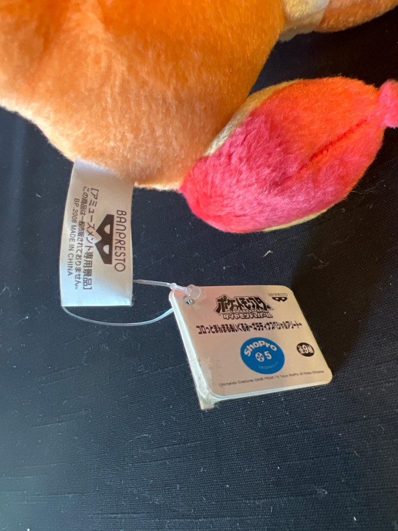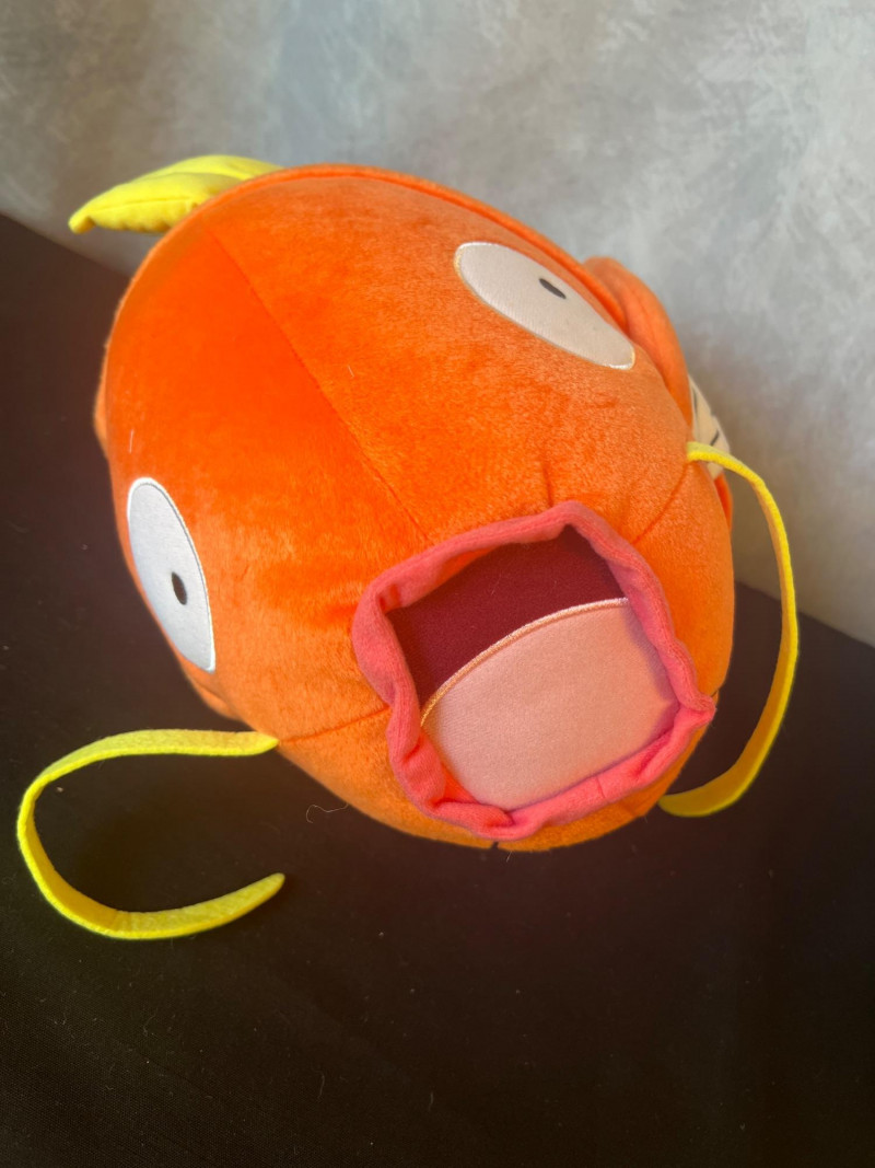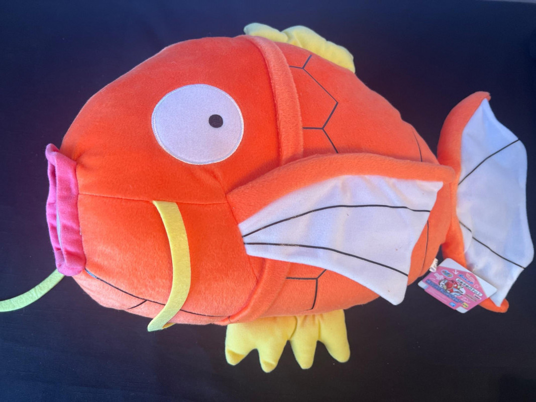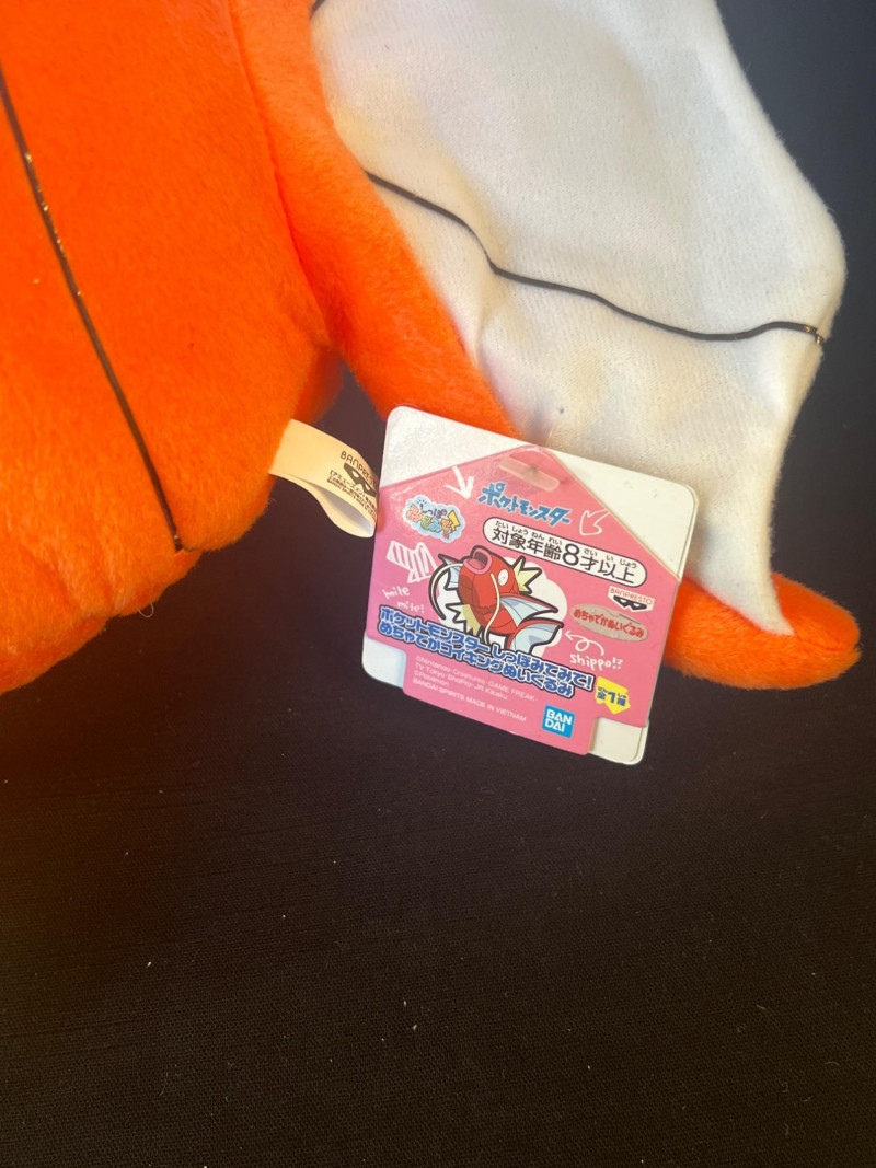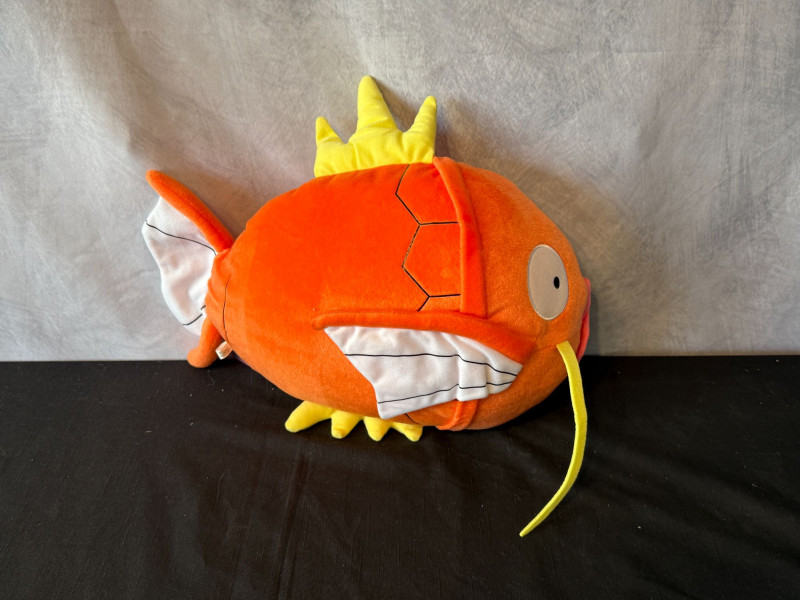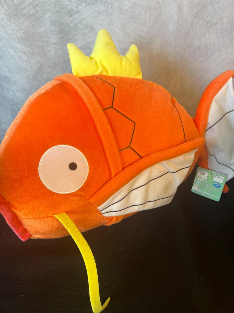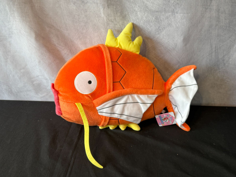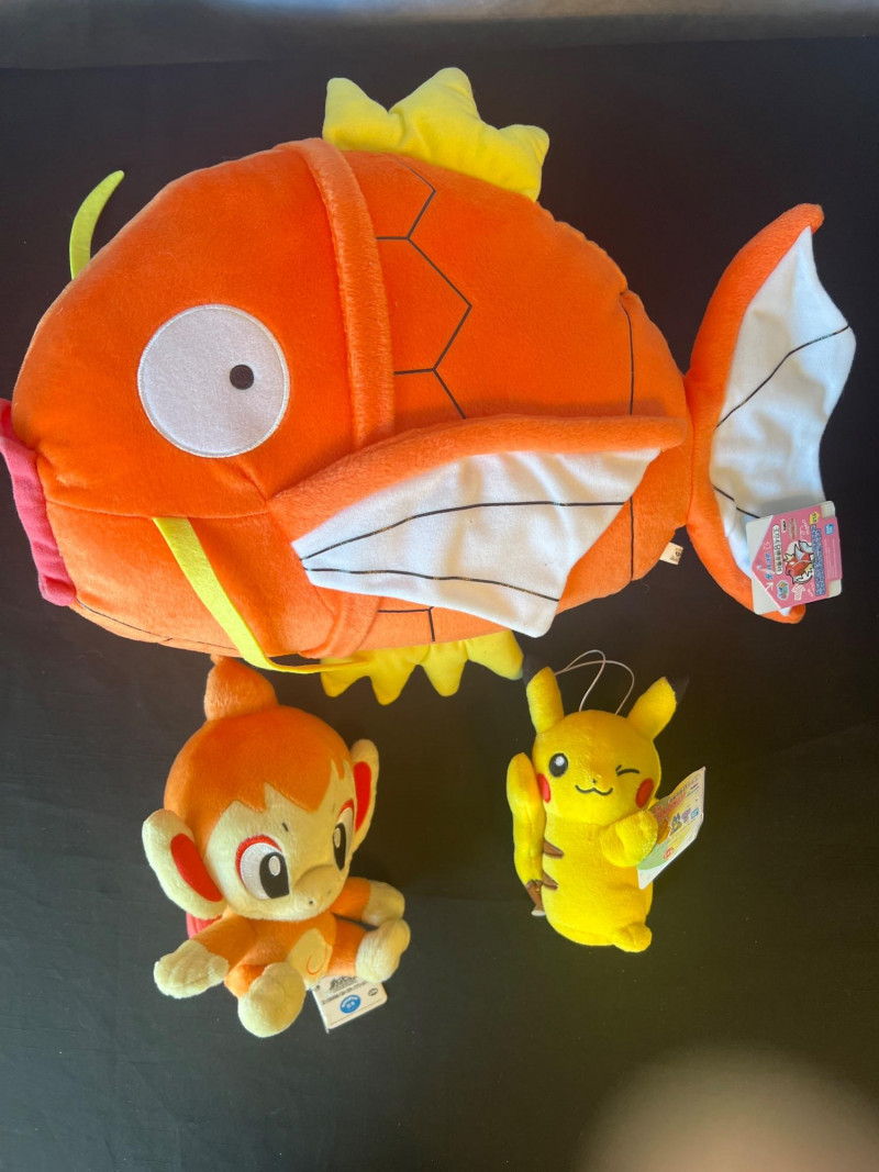Three‑plush Pokémon character lot featuring a large Magikarp plush along with Chimchar and Pikachu, each with original tags. All plushes are clean, bright, and well‑kept, offering a fun mix of classic and fan‑favorite characters. A charming bundle for collectors, kids’ rooms, or Pokémon fans looking for display‑ready plush toys. Magicarp- 15” length x 11” height Pikachu - 5.5” height Chimchar - 6” height
