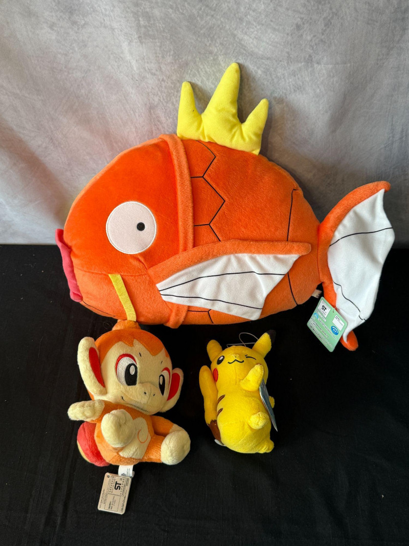 Lot # 59 - Pokémon Plush – Magikarp, Chimchar & Pikachu (Tagged, Clean)