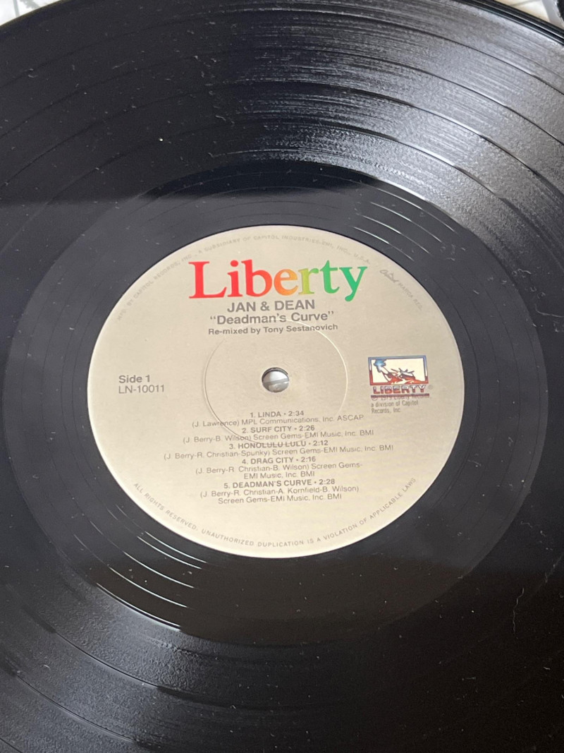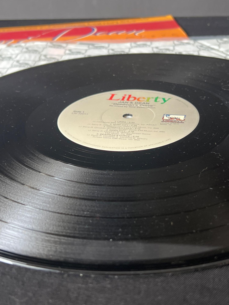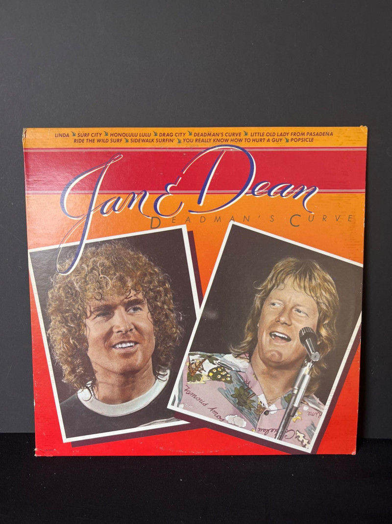 Vintage Jan & Dean Deadman’s Curve LP featuring classic surf‑rock and hot‑rod hits including “Surf City,” “Drag City,” “Little Old Lady from Pasadena,” and the title track. Cover presents well with light wear; vinyl visually ungraded. A fun, nostalgic addition for collectors of 1960s California sound.