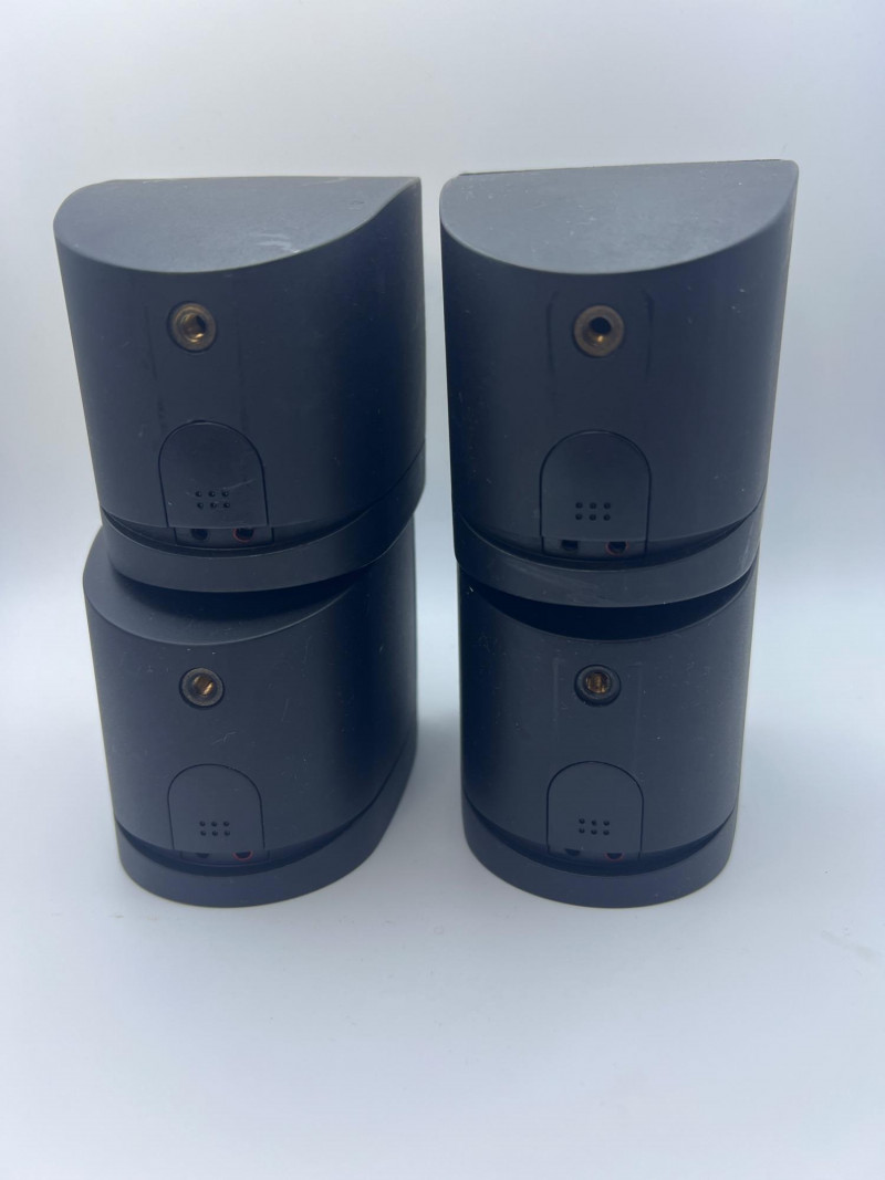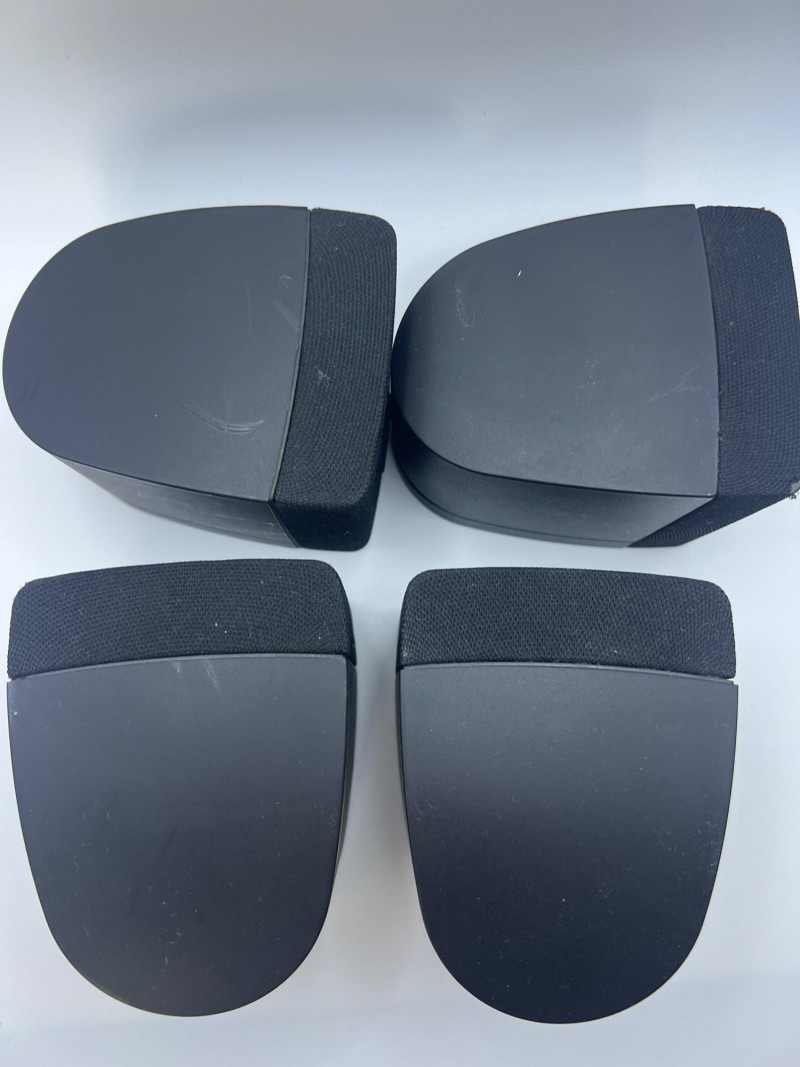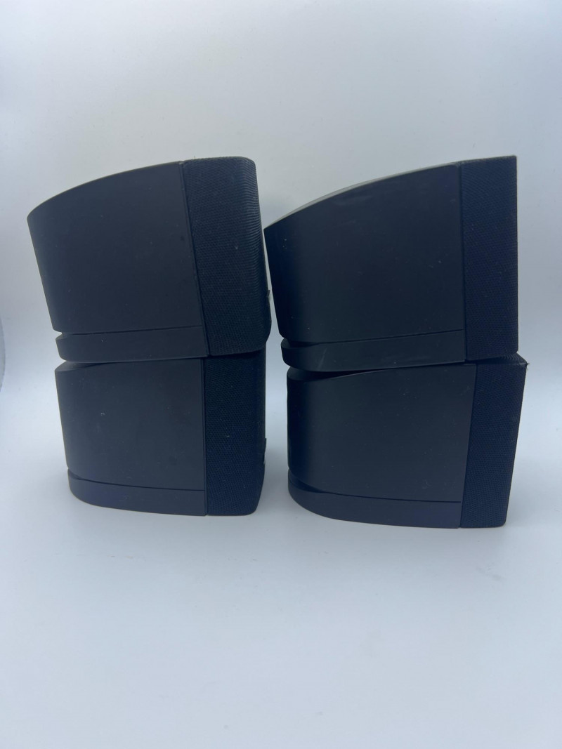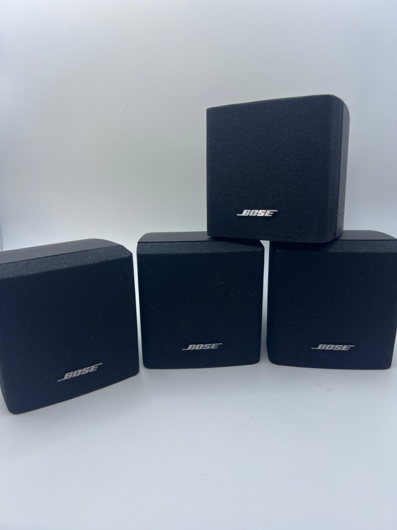Set of four Bose cube‑style satellite speakers designed for home audio and surround‑sound systems. Compact black enclosures with front grilles and the classic Bose logo. Ideal as replacements, expansions, or supplemental speakers for compatible Bose systems. Exterior surfaces show handling and age‑appropriate wear consistent with prior use.