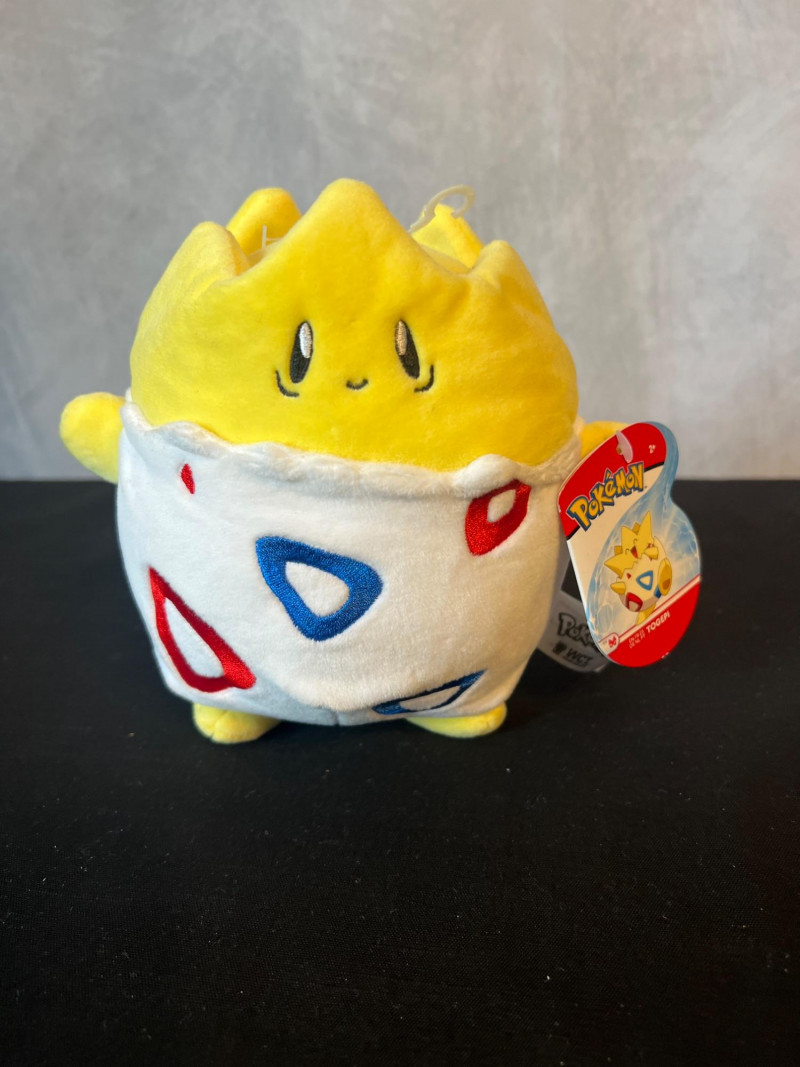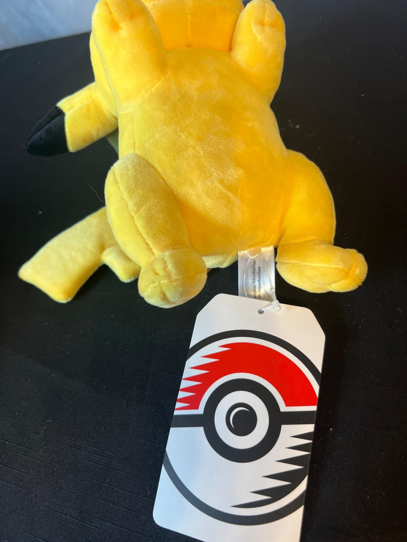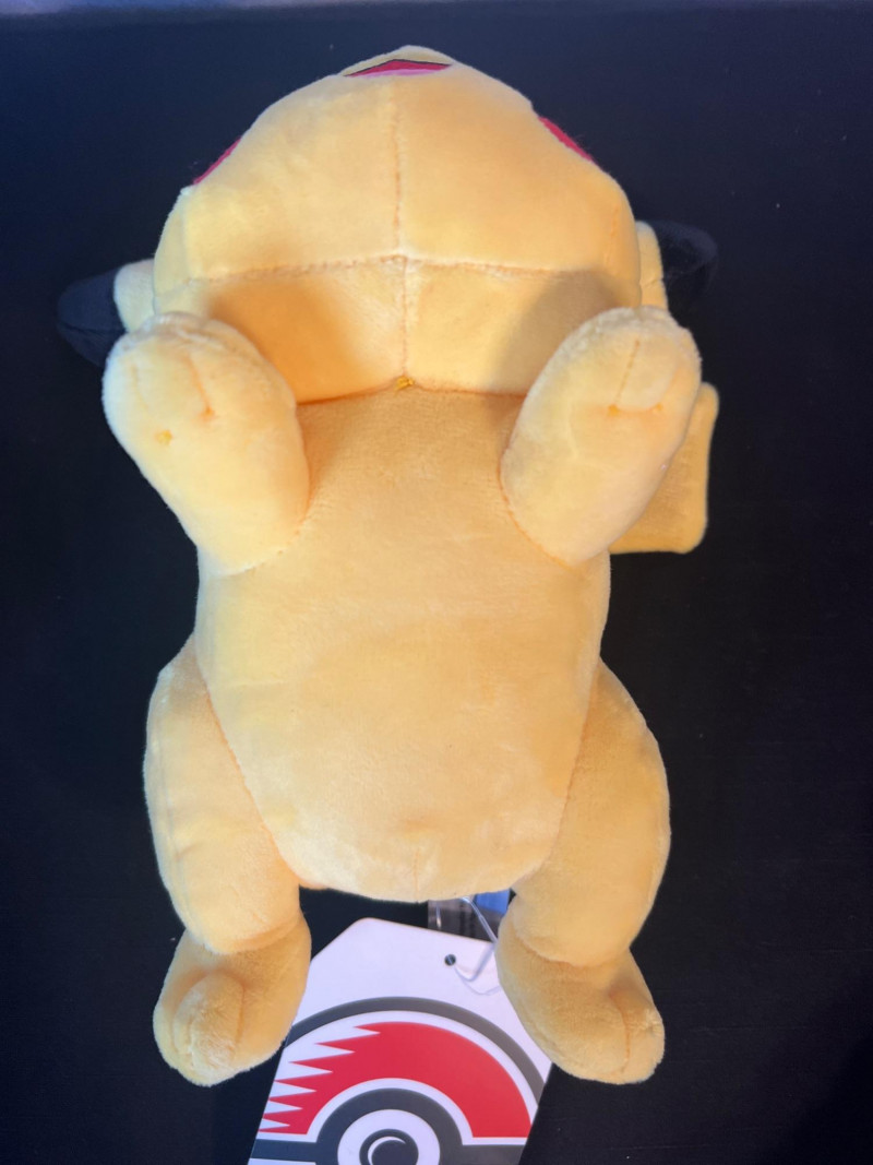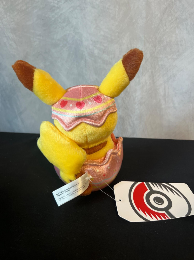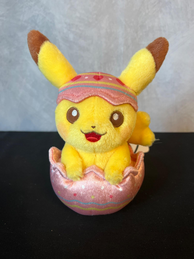 Adorable Pokémon plush collection, each approximately 9 inches and with original tags. Includes multiple Pikachu variants plus classic fan‑favorite characters: Pikachu (Ramen Bowl) – holding a bowl of ramen with chopsticks; bright, expressive design. Pikachu (Green Hat) – cheerful Pikachu wearing a green cap. Pikachu (Winking) – classic yellow plush with winking expression and tag. Togepi Plush – soft, pastel‑colored design of the beloved baby Pokémon. Charmander Plush – partially visible in the back; bright orange with signature flame‑tail styling. (no tag) All plush appear clean, vibrant, and well‑kept with tags attached (excluding Charmander). A charming bundle for collectors, kids’ rooms, or Pokémon Center fans.