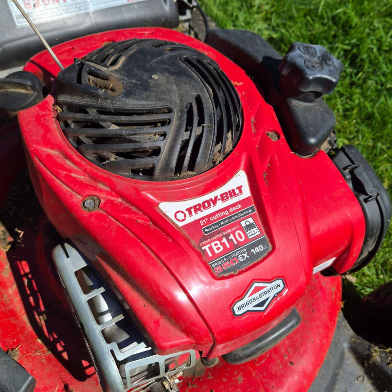Troy‑Bilt TB110 gas lawnmower powered by the trusted Briggs & Stratton 550EX 140cc engine. This model features a 21‑inch cutting deck, giving you efficient coverage for small to medium lawns while delivering a clean, even cut. The TB110 is known for its straightforward operation, solid build, and reliable performance. This unit starts and runs, making it a ready‑to‑use option for spring and summer yard care. Model number 11A‑A2BM711. A great choice for homeowners who want a no‑nonsense mower with proven engine power. Works. Could use a tune up and fresh gas.