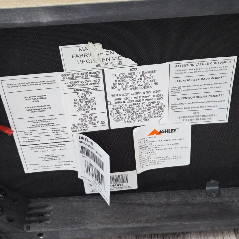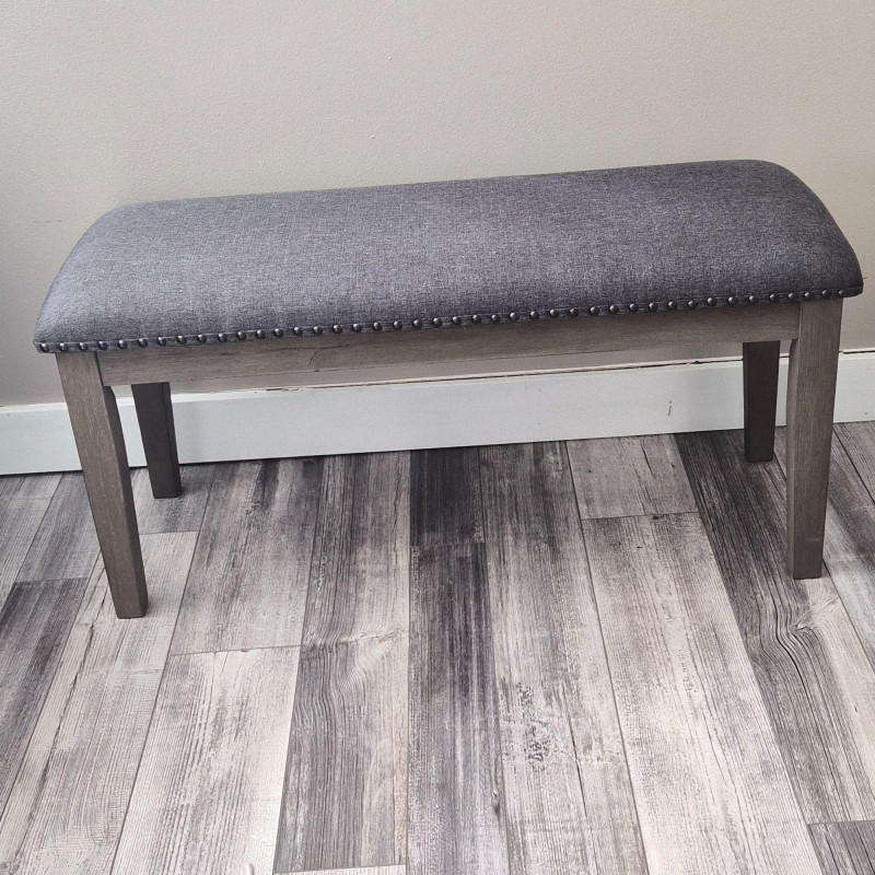 Lot # 18 - Ashley Dark Grey Upholstered Bench with Tack Accents