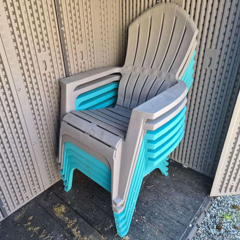 Lot # 28 - Six Plastic Adirondack Style Outdoor Chairs