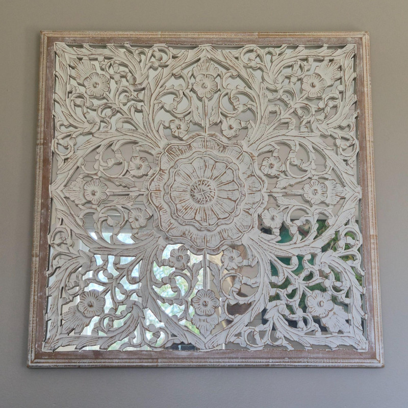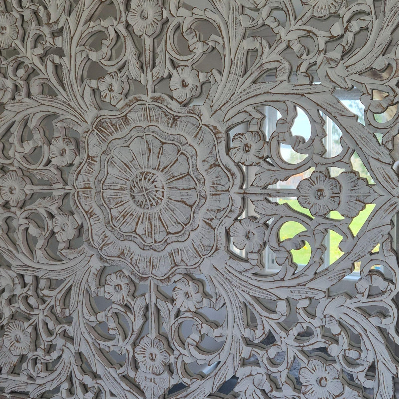 Lot # 32 - Rustic White Carved Panel with Mirrored Backing – Sukho Style Mandala