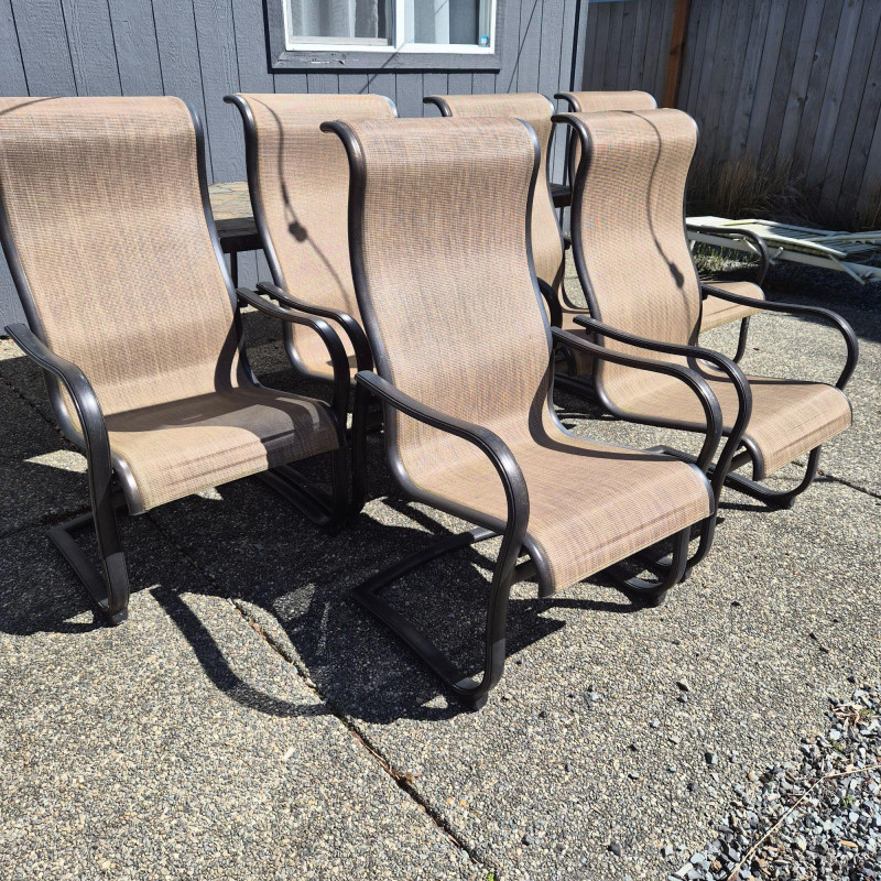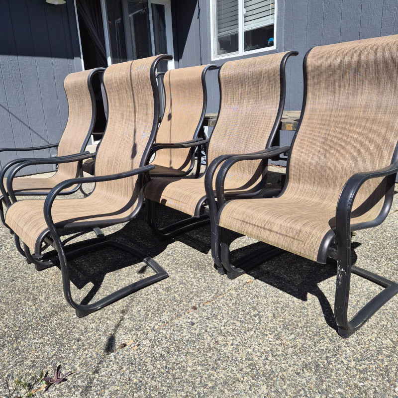 Lot # 41 - Six Aluminum & Tan Mesh-Back Patio Chairs