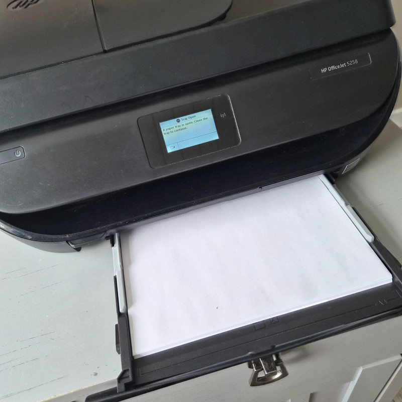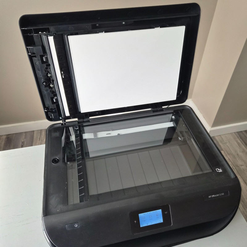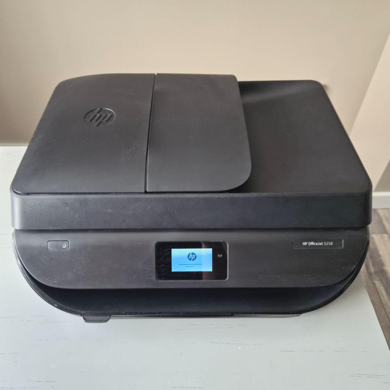 HP Office Jet 5258 all‑in‑one printer in clean condition. All functions appear to be working, including printing, scanning, copying, and faxing. A solid home‑office machine with wireless capability and a compact footprint. Key Specifications (HP Office Jet 5258) Type: All‑in‑One Inkjet Printer (Print / Copy / Scan / Fax) Print Resolution: Up to 4800 × 1200 optimized dpi Copy Features: Fax: Automatic Document Feeder: 35‑sheet ADF Connectivity: Ink System: Uses HP 63 or HP 63XL cartridges (Black & Tri‑Color) Dimensions: Approx. 17.5" W × 14.5" D × 7.5" H