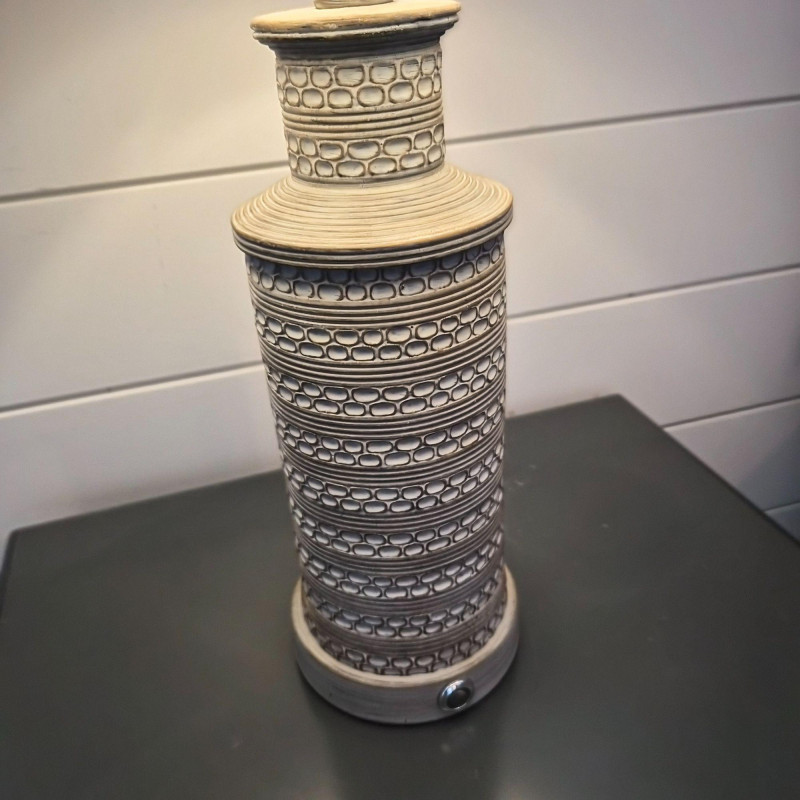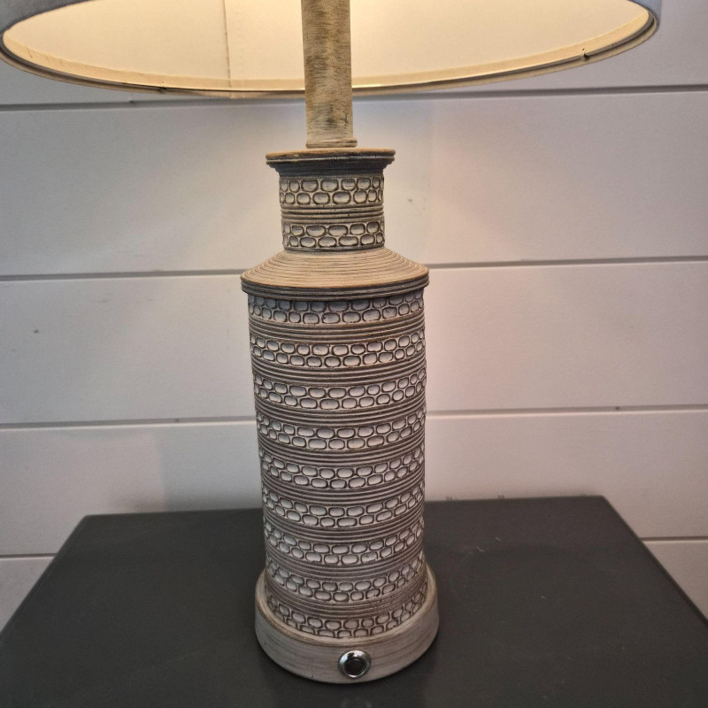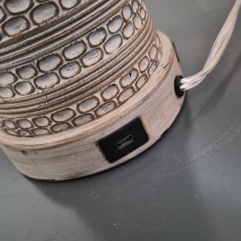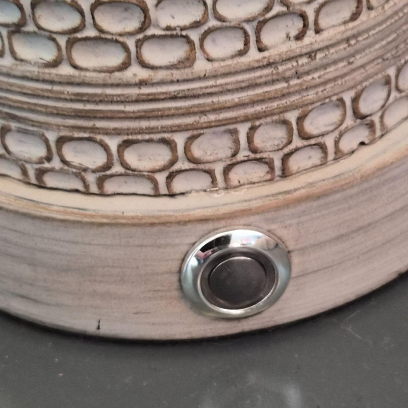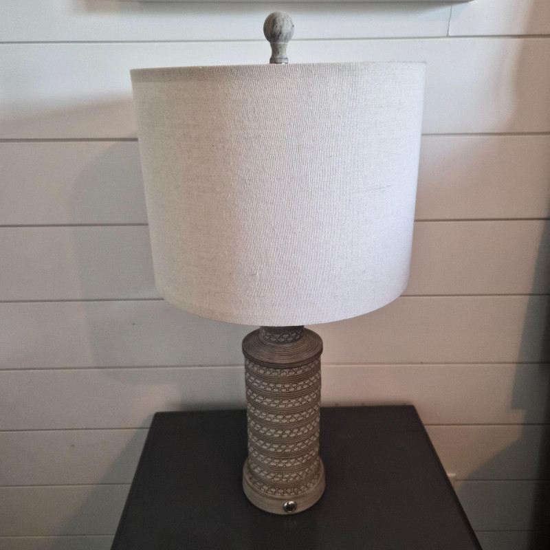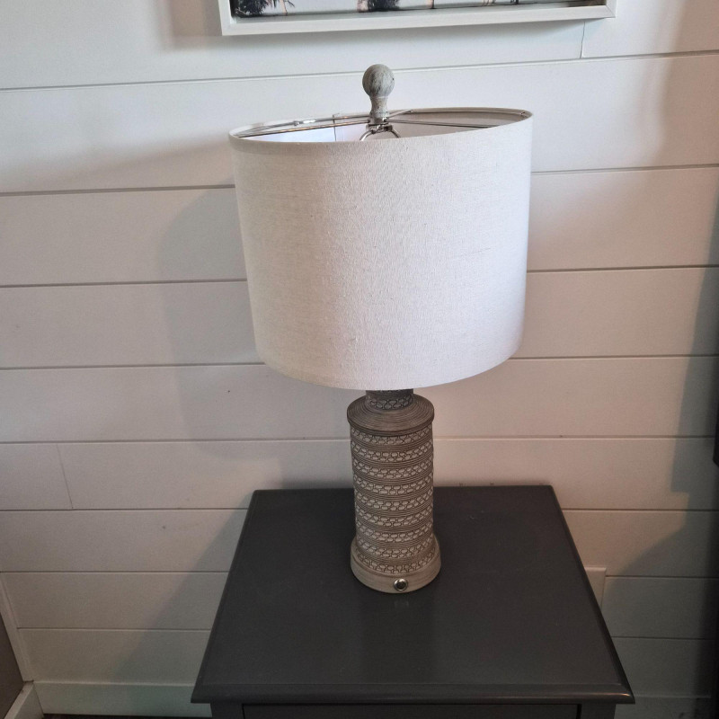A matching pair of ribbed resin table lamps in a vase‑style silhouette, each topped with a canvas drum shade for soft, even light. These lamps feature three‑way dimmable touch controls, making it easy to switch between low, medium, and bright settings with a tap. A stylish and functional pair—perfect for bedrooms, living rooms, or home offices.