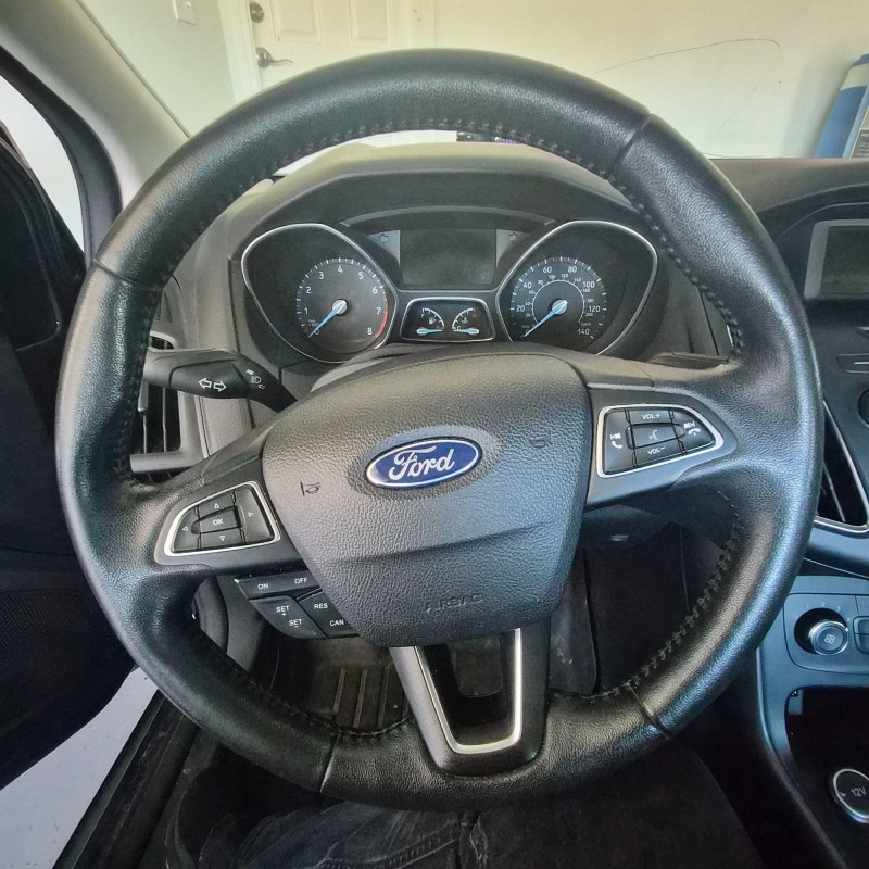 This lot will be updated on Sunday April 12th with more detailed information. A clean, 2016 Ford Focus SE 4‑door sedan in black with approximately 110,000 miles (final mileage to be verified once the new battery is installed to start). Equipped with an automatic transmission, this Focus features several desirable upgrades, including black leather seats, rubber all‑weather floor mats, and a premium sound system. The SE offers more standard features and tech options. Interior condition is clean, and the owner’s manual is included. One key/fob included. Noted condition details: A solid commuter car with upgraded comfort features and a clean interior.