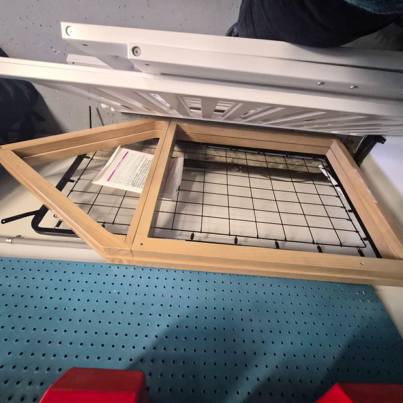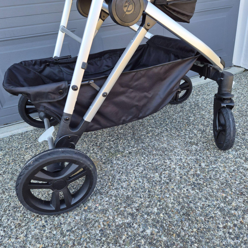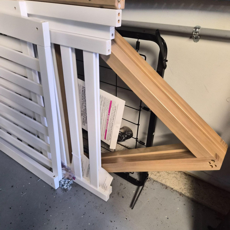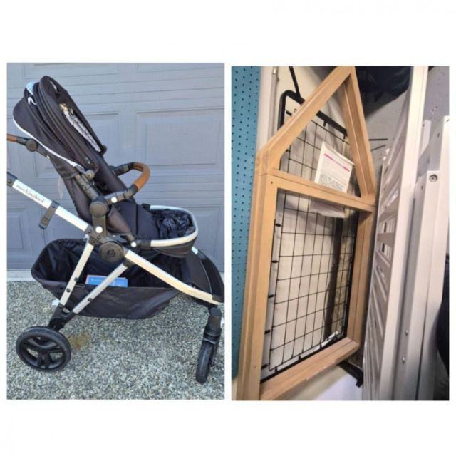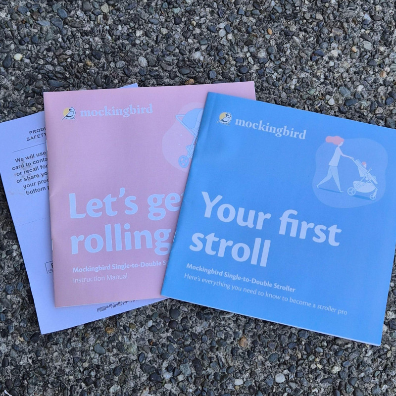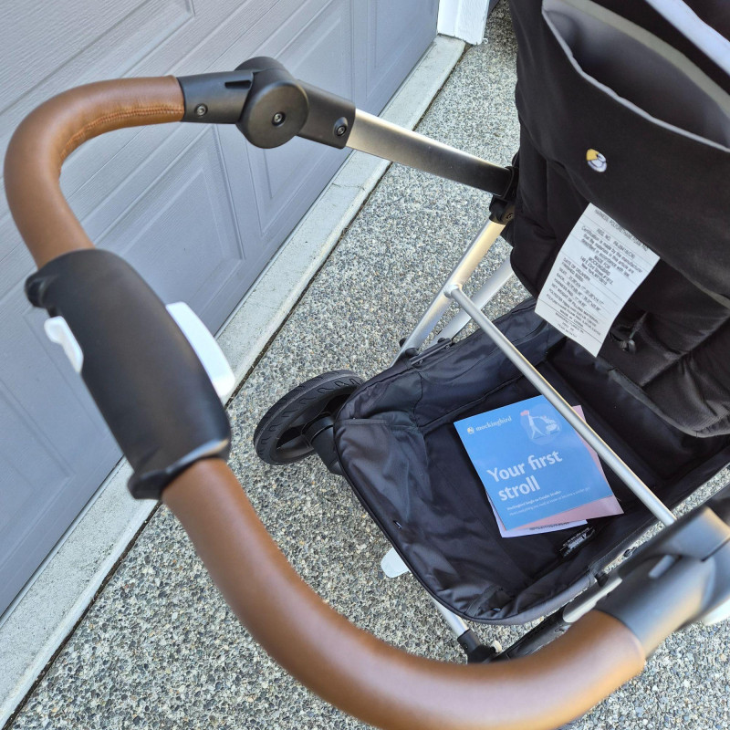A premium, modern Mockingbird single‑to‑double stroller, brand‑new and unused, offering multiple seating configurations and smooth maneuverability. Features include a sleek frame, adjustable seating positions, generous storage, and Mockingbird’s well‑known modular design that grows with your family. User's manual to get you started. Also included is an unused, unassembled white crib with a charming house‑shaped wood top, perfect for creating a cozy, design‑forward nursery. All visible hardware and components appear to be present. No mattress included. A fantastic bundle for new parents or anyone preparing a stylish, functional nursery and stroller setup.