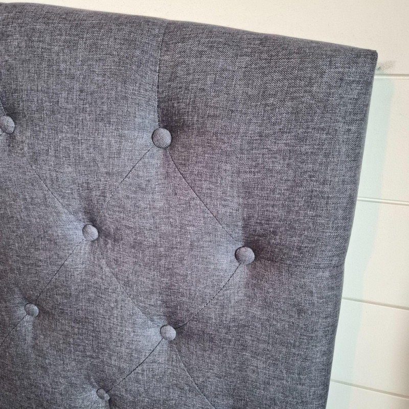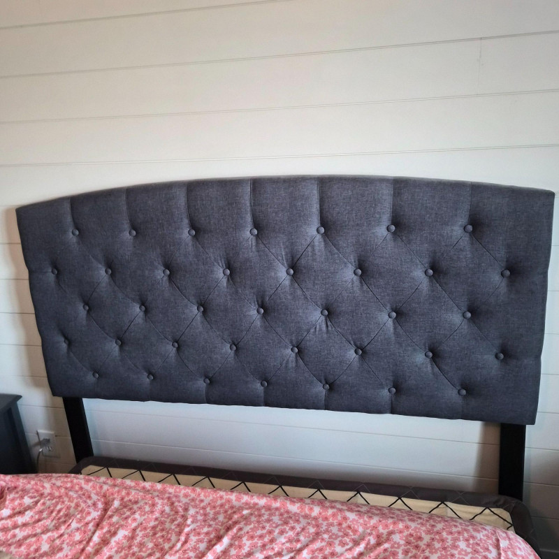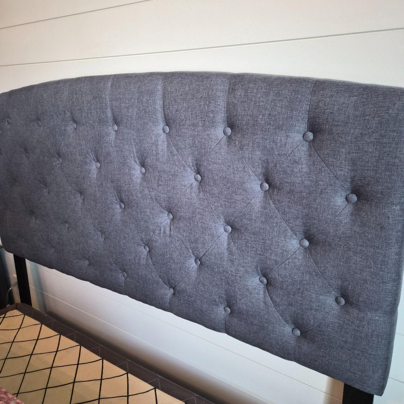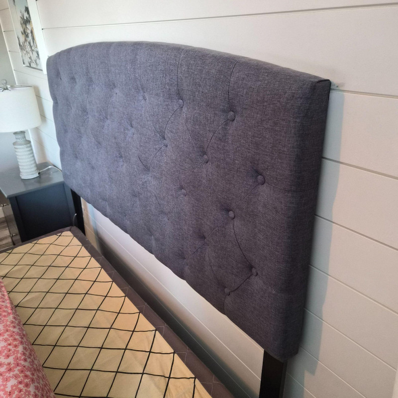 A stylish dark grey fabric headboard featuring classic button tufting and a clean, modern silhouette. This listing is for the headboard only (no frame included). Designed for a queen‑size bed, it attaches to a standard bedframe with one screw on each side. The screws appear to be an Allen‑wrench type, but exact tool size may vary. A versatile, neutral piece that works beautifully in modern, transitional, or minimalist bedrooms.