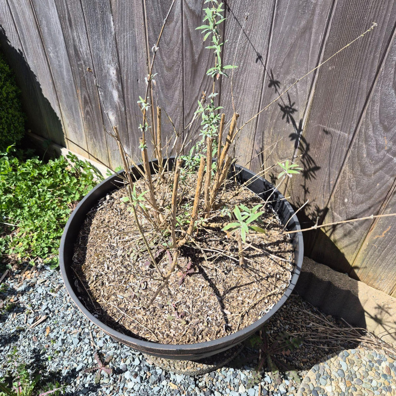 Lot # 8 - Four Resin Barrel‑Look Outdoor Planters with Butterfly Bushes