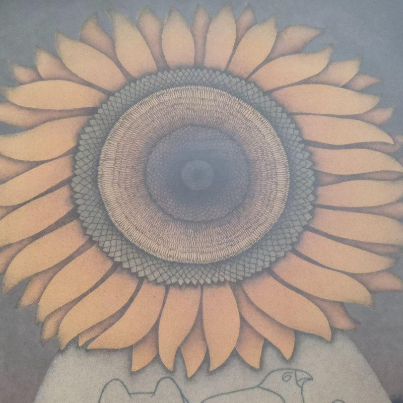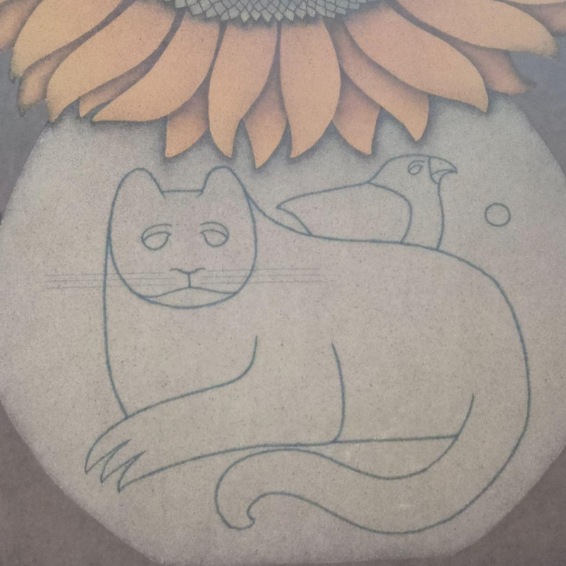 Lot # 1 - S/N Carol Jablonsky - 'Helianthus' Sunflower, Cat & Bird Motif ($500)