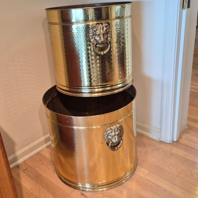 Lot # 3 - Bristol Brass Nesting Planters, Lion Knocker-Style Handles (#1)