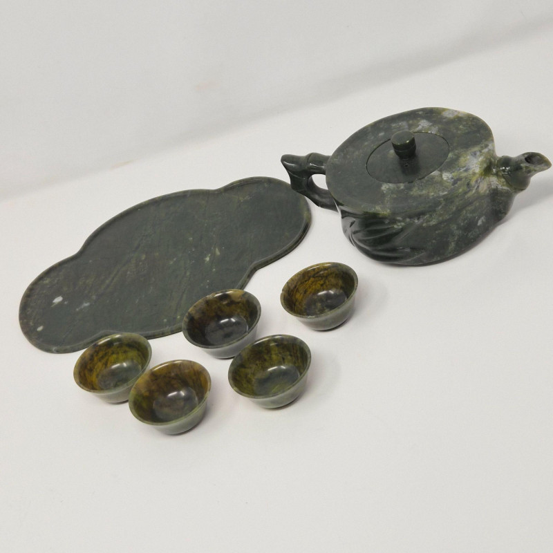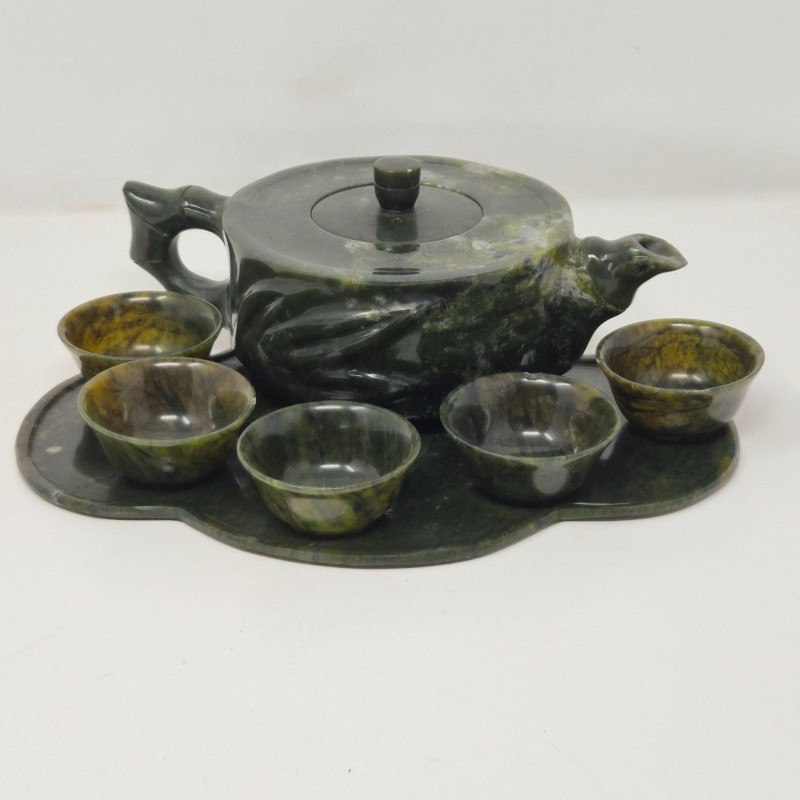 Lot # 11 - Jade Mini Tea Set - Tray, Pot and Five Cups