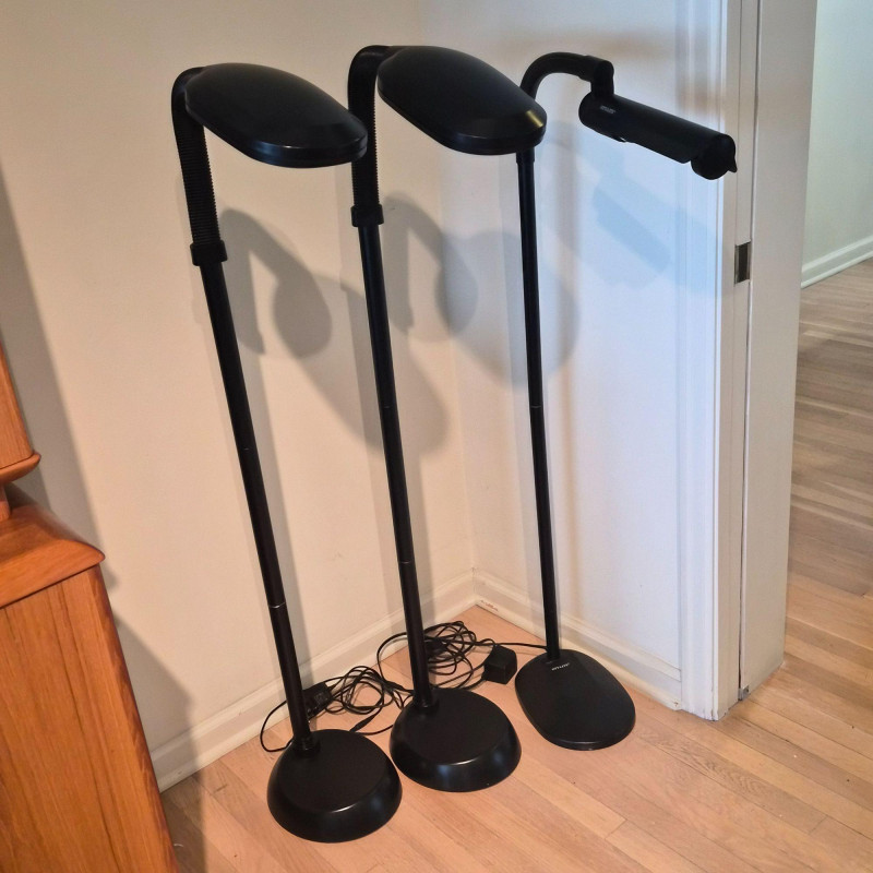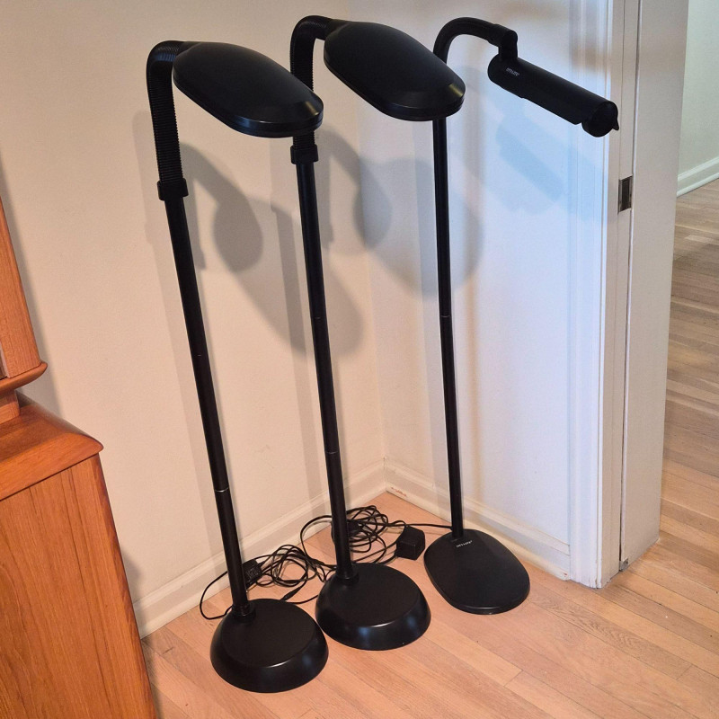 Lot # 4 - Flexible‑Arm Ott-Lite & LiteSpan Metal Stick‑Style Floor Lamps