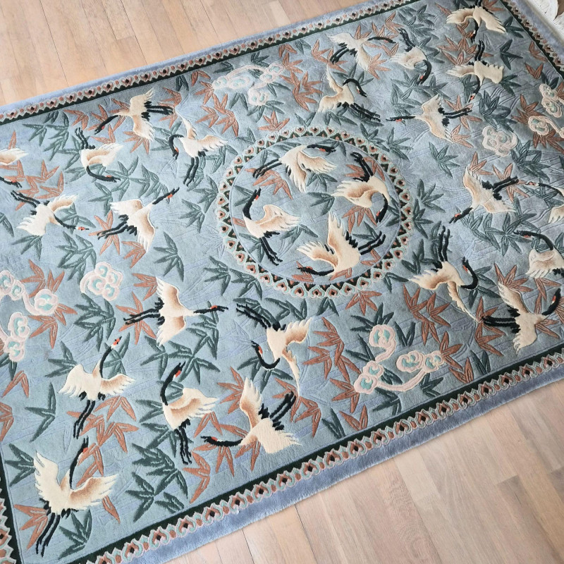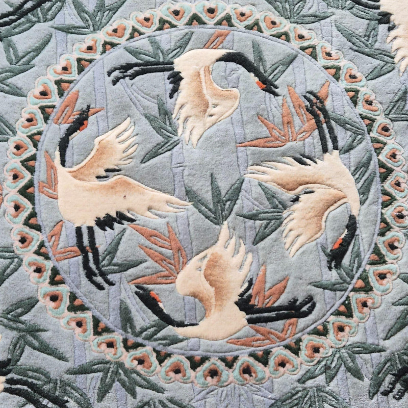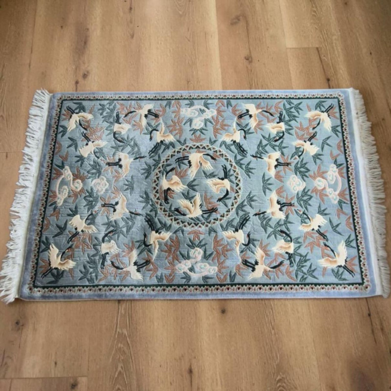 Lot # 23 - Blue & Earthtones Wool Rug with Crane Motif