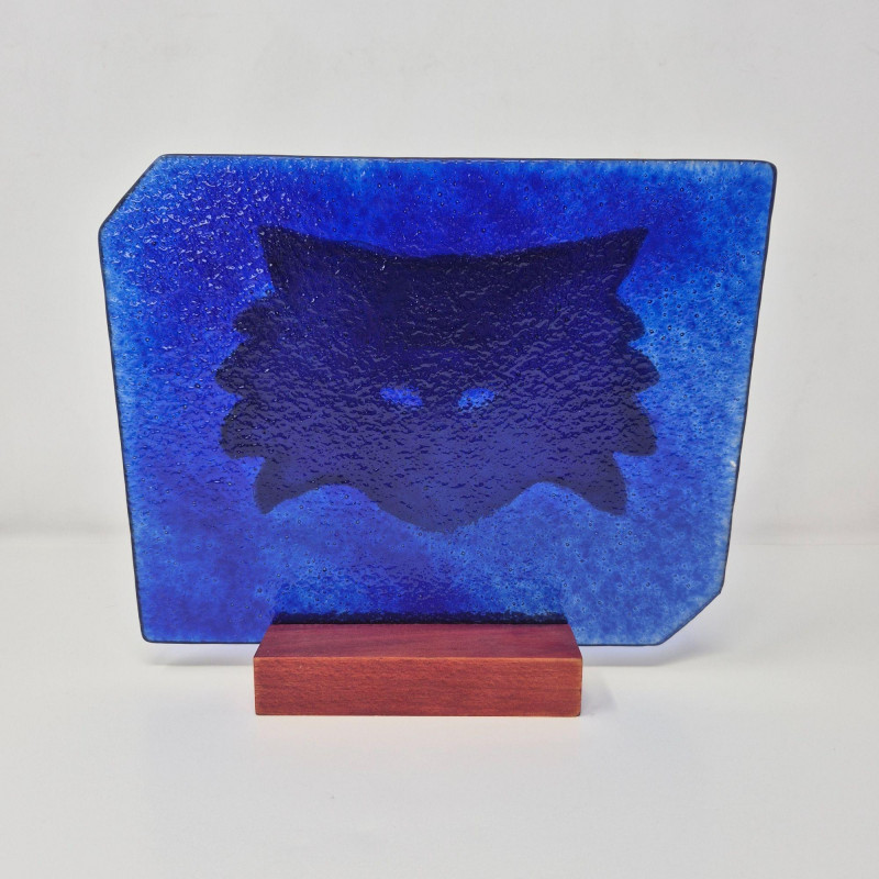 Lot # 33 - Gentinetta Ceramic Mask Mounted on Cobalt Art Glass