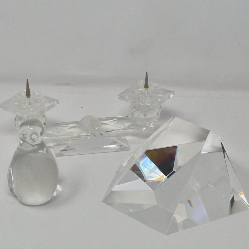 A refined trio of clear crystal décor pieces, each offering sculptural sparkle and elegant light play: Steuben Ice Crystal — 5" × 4" × 2.5"