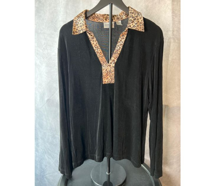 Lot # 40 - Chicos Travelers Leopard Collar Black Top