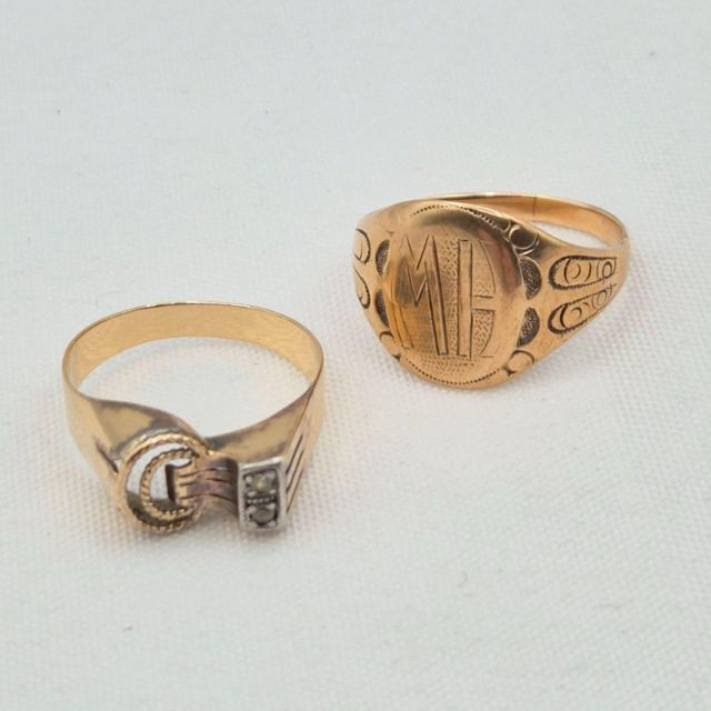 Lot # 4 - Vintage 18k & 10k Gold Rings – Diamond & Monogram
