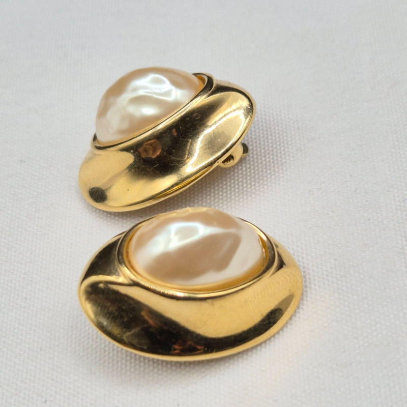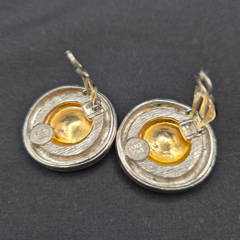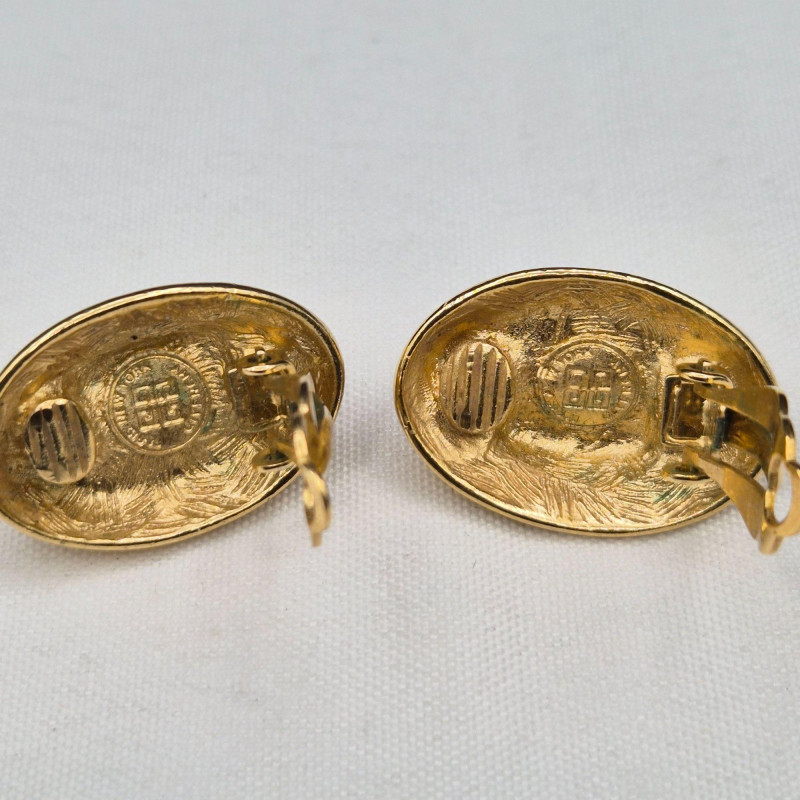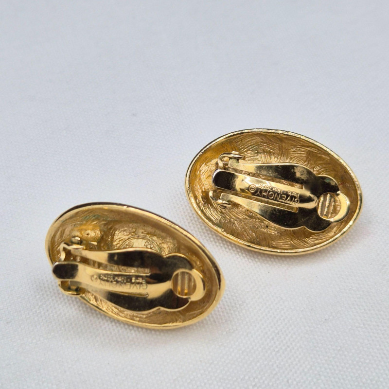 A stylish duo of Givenchy Paris-New York clip earrings, likely from the 1980s, showcasing the brand’s signature elegance and bold design: Both pairs are marked Givenchy Paris-New York, reflecting the brand’s legacy of sophisticated, statement-making accessories.
