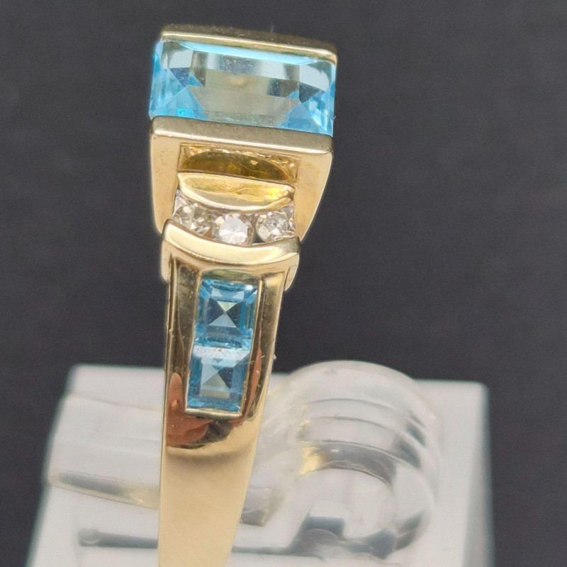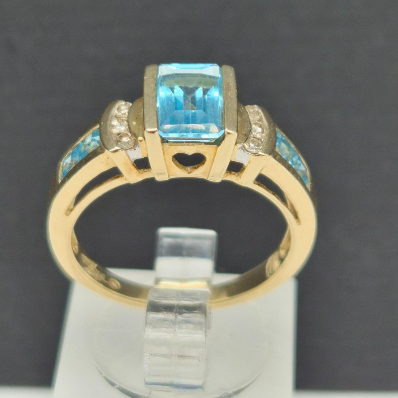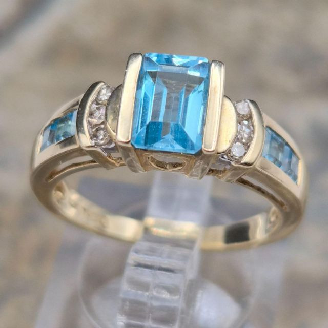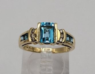 Lot # 9 - Samuel Aaron 10k Gold Ring – Blue Topaz/Aquamarine & Diamonds ($350)