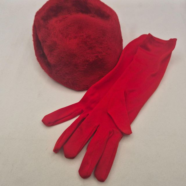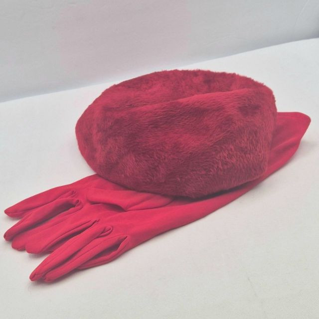 Lot # 10 - Miss Dior Red Wool Beret & Nylon Gloves